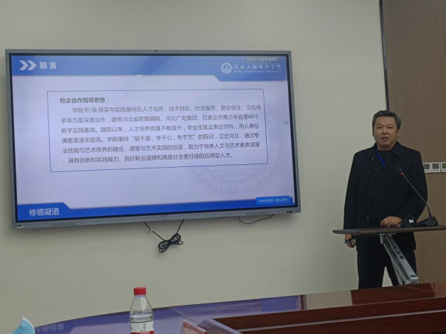 在校企合作方面,自去年9月份以来,我校共有校企合作单位372家,其中授牌校外实习实训基地的有54家。截至目前,我校与行业龙头企业共建现代产业学院4个,即新龙软件产业学院、科大讯飞人工智能产业学院、新道数智财经产业学院、华为现代产业学院建设;与知名品牌企业合办专业2个,即与百度合办区块链工程专业、与清博教育合办虚拟现实技术专业;引企入校1家,即河北世纪建材检测设备有限公司。