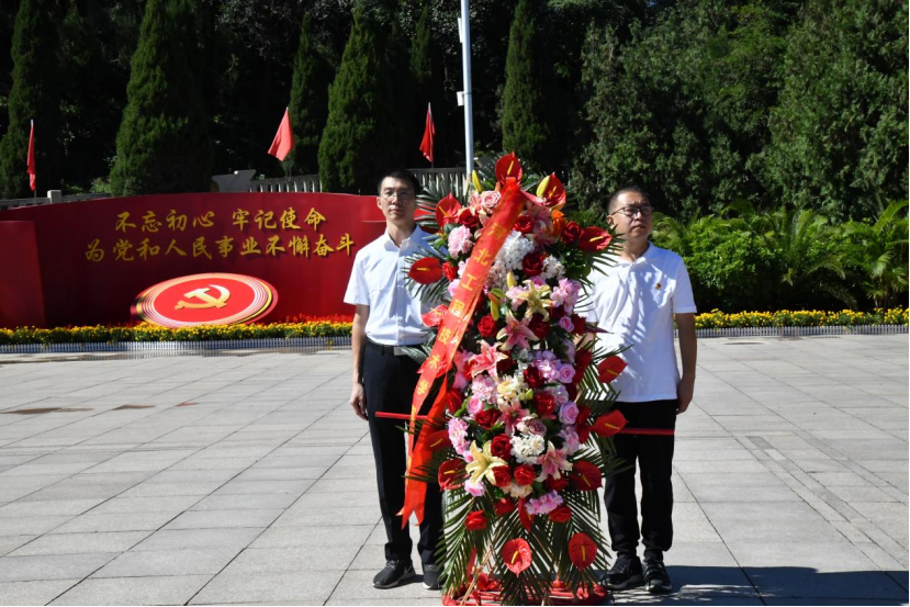 在西柏坡纪念馆广场,教师们集体瞻仰五大书记青铜铸像,敬献花篮,鞠躬行礼,表达崇高敬意。由常新平书记领誓,面向党旗重温入党誓词,追寻百年历史的精神根脉,回忆奋战革命的初心使命。