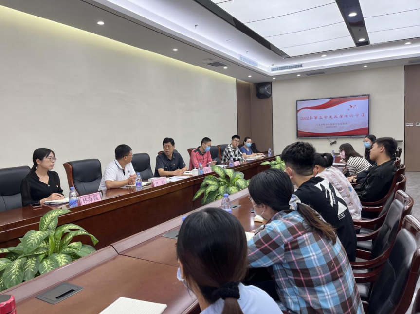 为切实提高党员干部和教职工的政治觉悟和理论水平,坚持以党的最新理论成果武装头脑、指导实践,为推进工作落实提供坚强有力的思想保证和精神动力,以实际行动推动学校高质量发展,以优异成绩迎接党的二十大召开,结合学校部署,9月27日上午,人工智能与大数据学院党总支于图书馆报告厅第二会议室召开了第三季度政治理论学习会。参会领导有校党委书记常新平,校党委委员安若镝,人工智能与大数据学院党总支书记、副院长尹钧,副院长林海霞,全体教职工党员参加了此次会议。