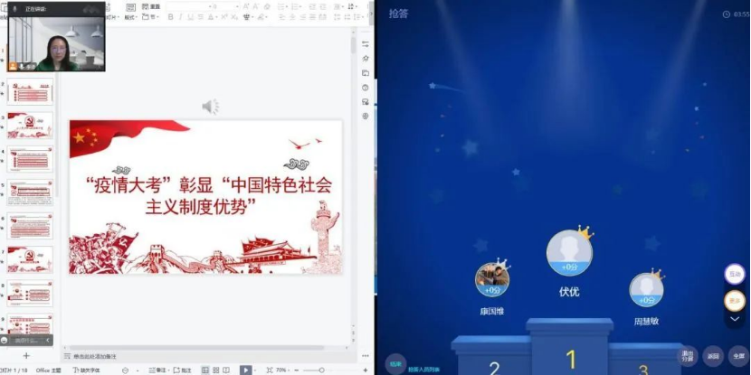 思政课教师有针对性制作了疫情防控课件,总结概括了新冠肺炎疫情发生以来,在以习近平同志为核心的党中央坚强领导下,我们坚持人民至上、生命至上,坚持外防输入、内防反弹,坚持动态清零,因时因势不断调整防控措施,疫情防控取得重大战略成果。
