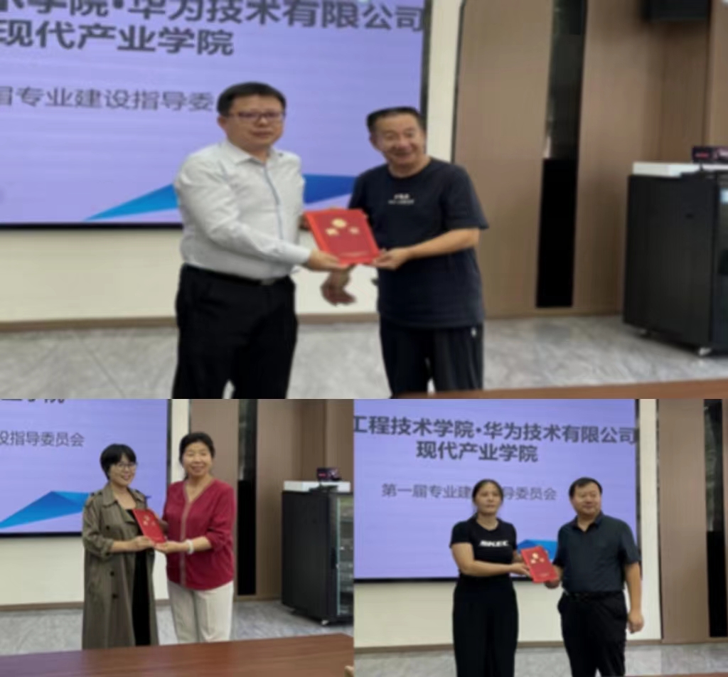 学校领导为华为公司魏华、刘洁、王妍颁发特聘证书