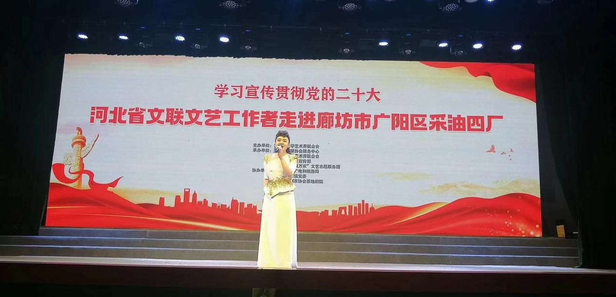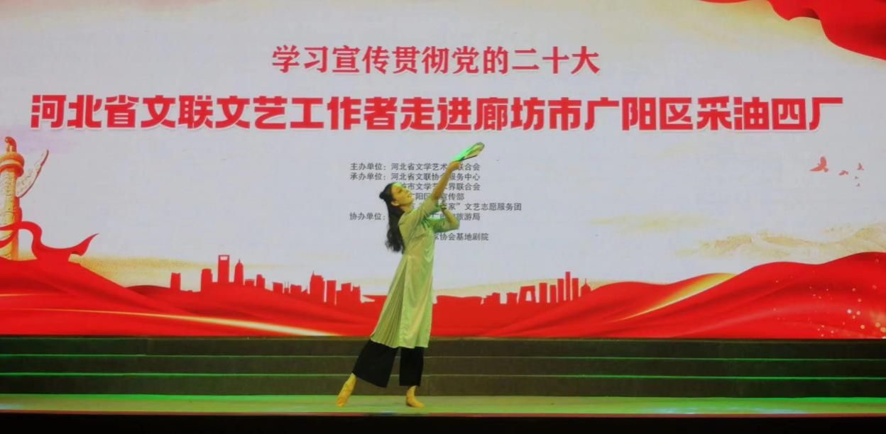 为进一步落实党的二十大精神,河北省文学艺术界联合会举办“学习宣传贯彻党的二十大精神,河北文艺工作者在行动”专题活动,我校艺术与传媒学院青年教师受邀参加此次文艺演出活动,走进国能集团黄骅港务公司与廊坊广阳区采油四场,为与会观众上演了一场别开生面的盛会。