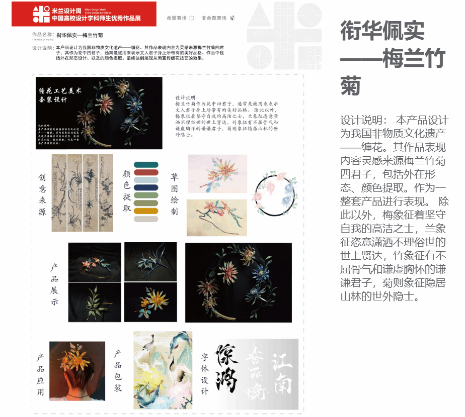 学生组一等奖作品《衔华佩实----梅兰竹菊》