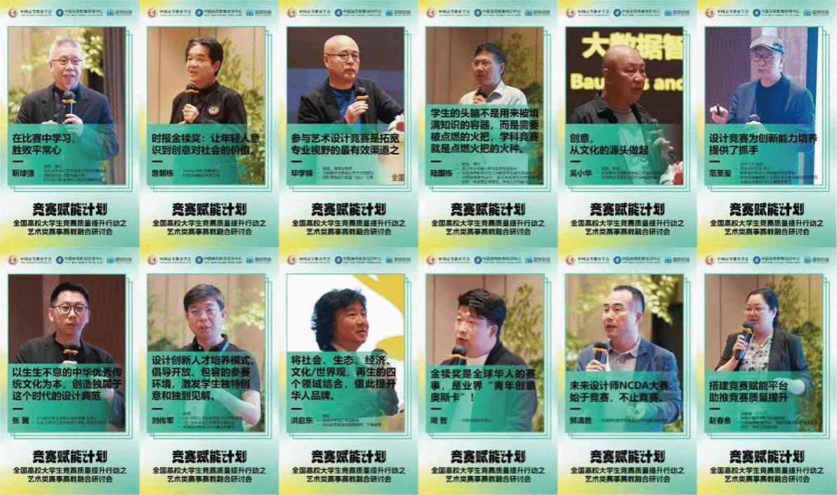 5月21日的活动中,来自同济大学的范圣玺教授以及国际知名艺术家与设计师靳埭强博士分别就如何培养创造力以及开启创意之门等议题进行了精彩的分享。此外,DentsuMB创意顾问詹朝栋以及中国美术学院设计艺术学院院长毕学锋也对如何更好地参与专业竞赛,以及专业竞赛如何成为设计师的必经之路等议题进行了深入的讨论和分享。参会教师不仅获取了最新的艺术类竞赛组织与发展现状,更深入理解了大学生设计竞赛在新兴技术普及与发展中的角色,这些都对他们在日后的教学过程中,如何更好地培养学生的创新能力和实践能力提供了重要启示。