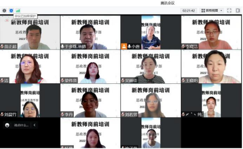 为扣好新入职教师职业生涯的“第一粒扣子”,建设高素质教师队伍,使新入职教师尽快了解学校情况,尽快适应学校工作需要,9月1日,思政教育教学部线上举行了2022年新入职教师培训。思政教育教学部主任于多珠教授、各教研组负责人和新入职教师参加了会议。会议由唐路红老师主持。