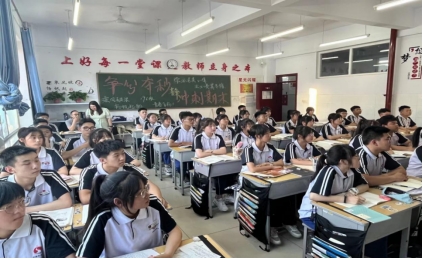 沙城实验中学高三3班学生在听谷旭同学讲解如何填写问卷