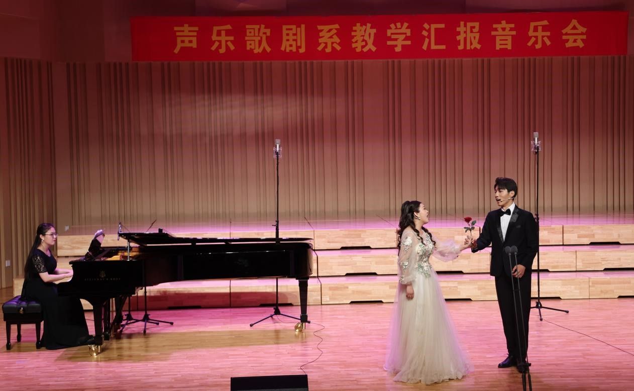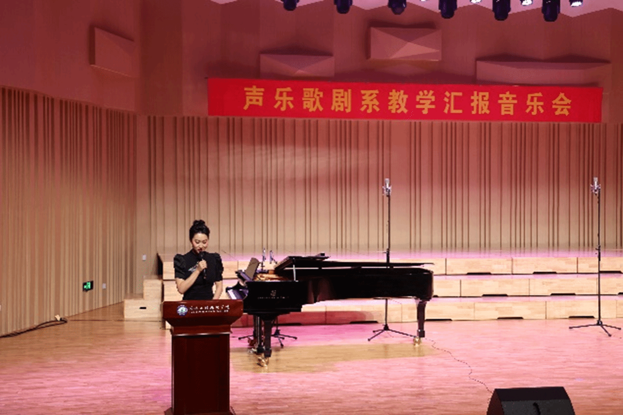 艺术与传媒学院声乐歌剧系声乐教学改革的阶段成果较为显著,为营造积极进取的学习氛围,促进教学相长,进一步提高教学质量,6月14日晚7点,艺术与传媒学院在校音乐厅举办声乐歌剧系教学汇报音乐会,学院领导及师生代表参与活动,声乐歌剧系主任郭艳艳开场致辞。