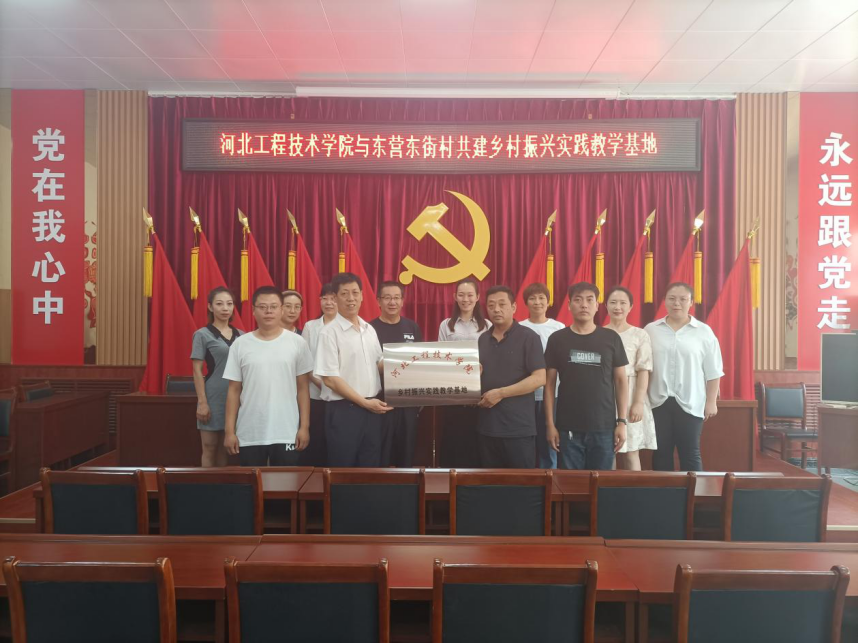 7月5日上午,我校与石家庄市鹿泉区东营东街村共建“乡村振兴实践教学基地”授牌仪式在东营东街村委会举行。党委书记常新平出席仪式,思政教育教学部相关人员参加。