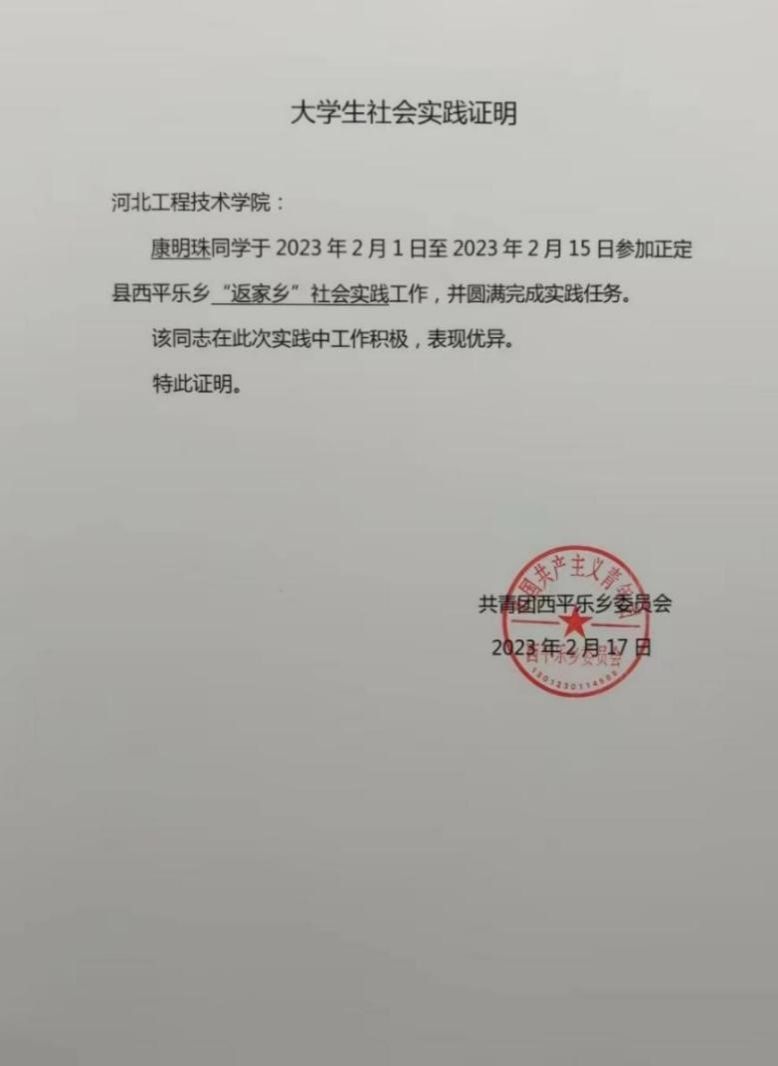 正所谓“纸上得来终觉浅”、“读万卷书不如行万里路”,社会实践对于大学生来说是培养自己处事能力和实践能力的重要方式,极具重要意义。为此,人工智能与大数据学院22级区块链三班康明珠在正定县西平乐乡积极参加了社会实践活动。