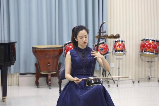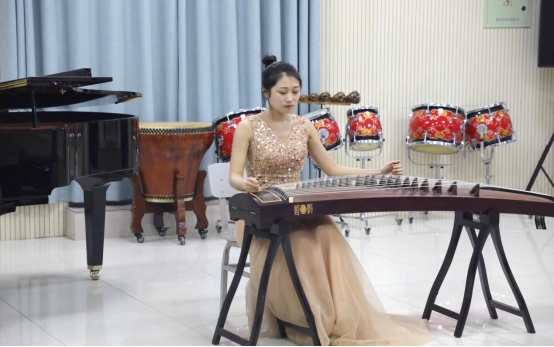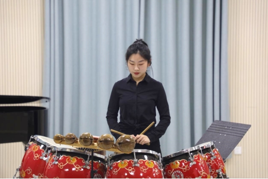 演出上半场,《雪山魂塑》通过二胡表达了红军长征时坚韧不拔的意志;《四风》借助低音花盆鼓与高音木盒的巧妙衔接,传达出坚毅、果敢的人生态度;《定风波》通过古筝与钢琴的融合,将诗人陷入低谷时对生活依旧报以信心的豁达胸怀传递给在场观众……器乐声声,将不畏困苦、策马前行的进取态度传递给广大青年,敦促其时不我待,奋勇拼搏。
