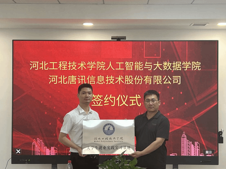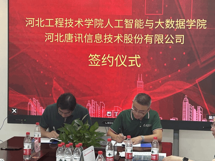 随后,河北唐讯信息技术股份有限公司与人工智能与大数据学院举行了签约仪式。河北唐讯信息技术股份有限公司是一家从事ICT行业的高新技术企业,国家级科小,河北省首批产教融合型培育企业,河北省省级服务外包示范型企业,2022年河北省首批专精特新企业。此次合作将为学生提供更多的就业机会和实践经验,为他们顺利步入职业生涯打下坚实基础。