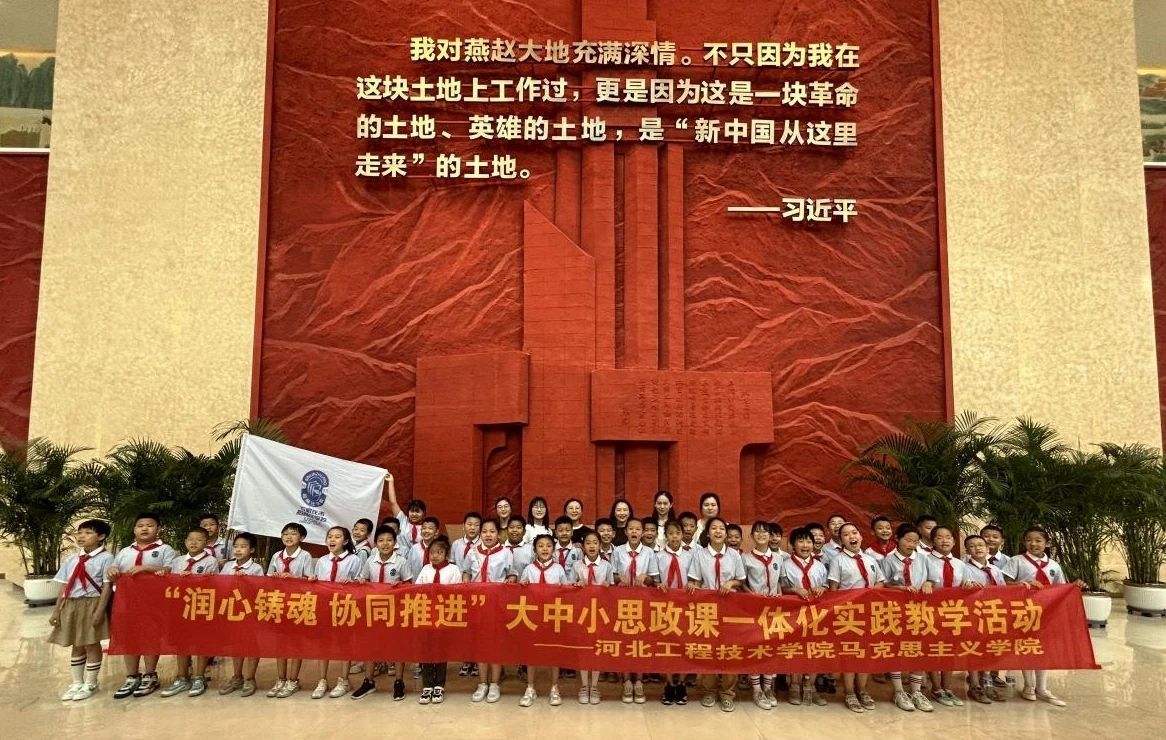 近年来,石家庄柏林庄学校重点围绕区域红色资源为主题设计了丰富的思政课程和实践活动,将思政小课堂与社会大课堂紧密结合,帮助学生涵养家国情怀,提升科学素养,养成良好品德;我校也始终在积极探索实施“大学引领 资源融合”的大中小学思政课一体化建设路径,聚焦立德树人根本任务,立足育人为本、一体建设原则,共享共建思政课教学和实践资源。