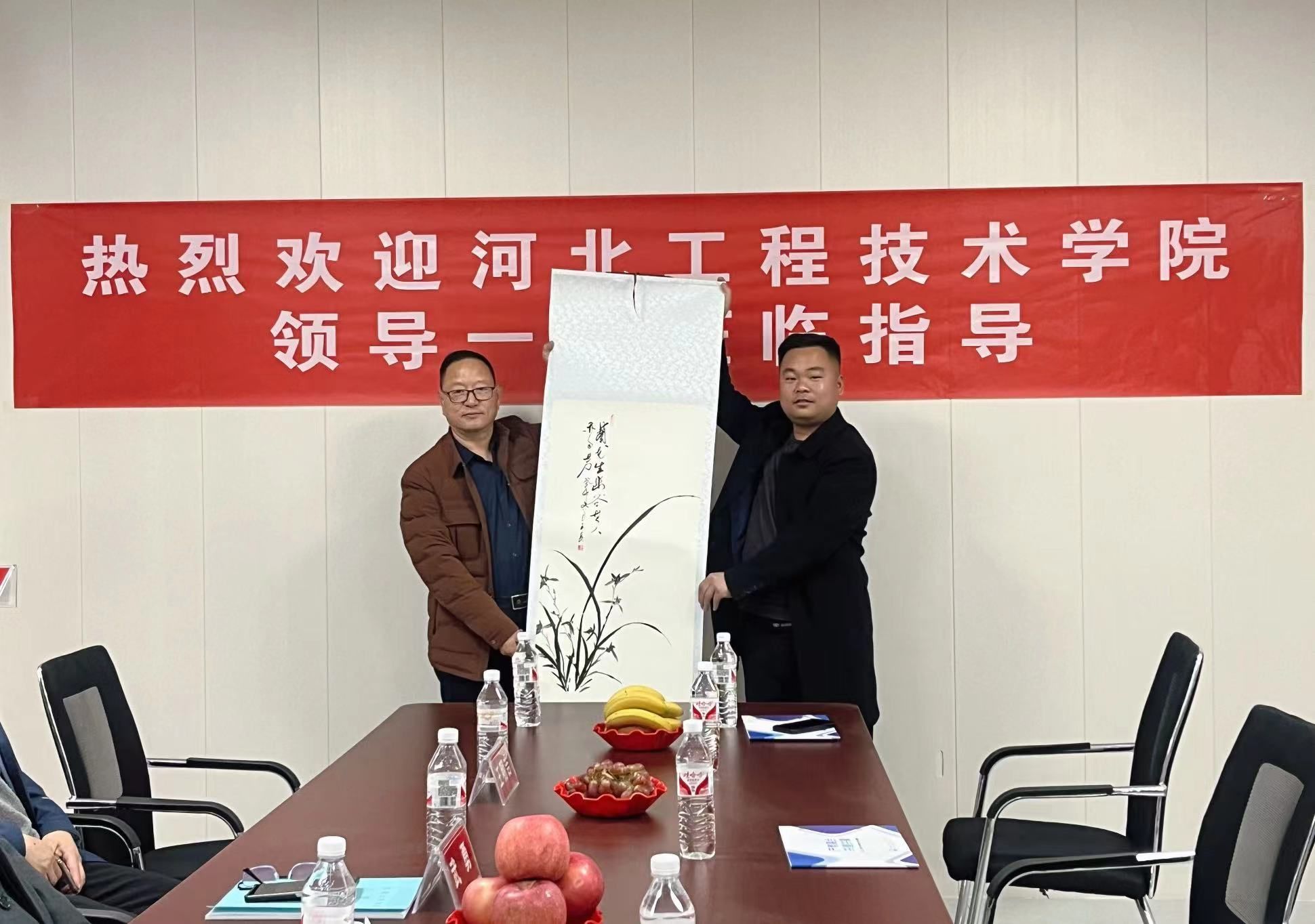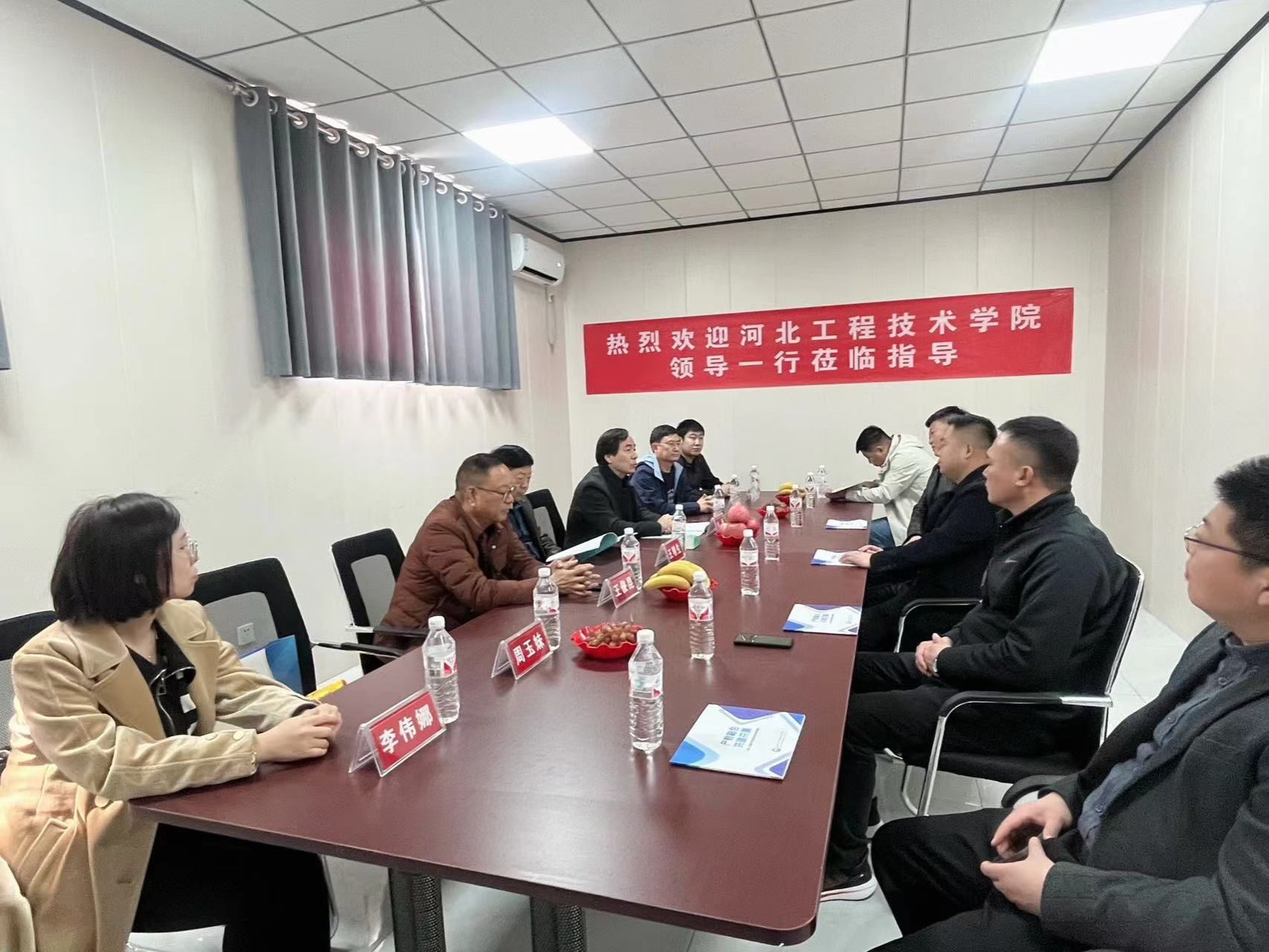 在河北丰旷建材科技有限公司董事长孟祥召的陪同下,武助理一行参观了企业的生产车间、研发中心和产品展厅,详细了解了公司的生产流程、技术研发和市场布局。随后,双方举行了校企合作座谈会,就产学研合作、联合人才培养、科技创新和科技成果转化等方面进行了广泛而深入的交流。