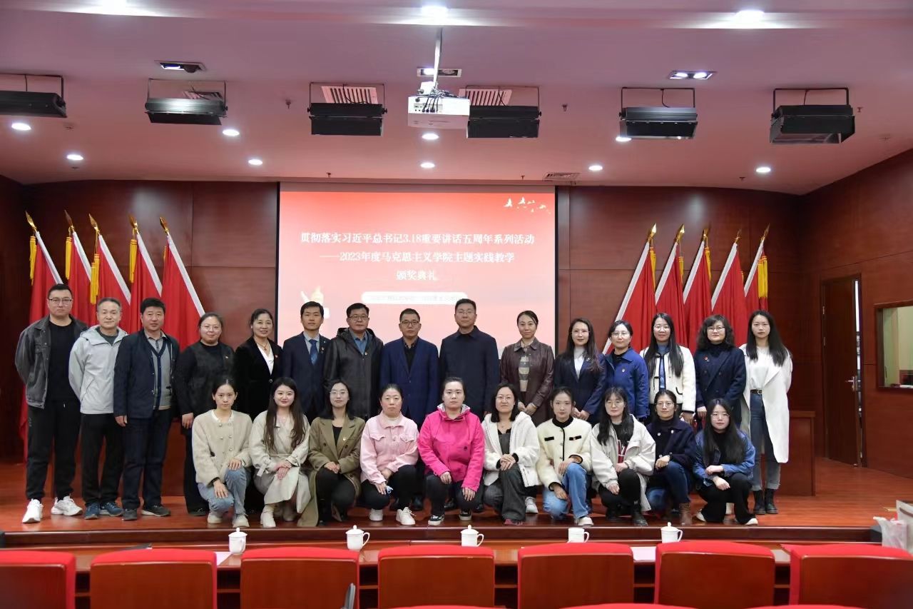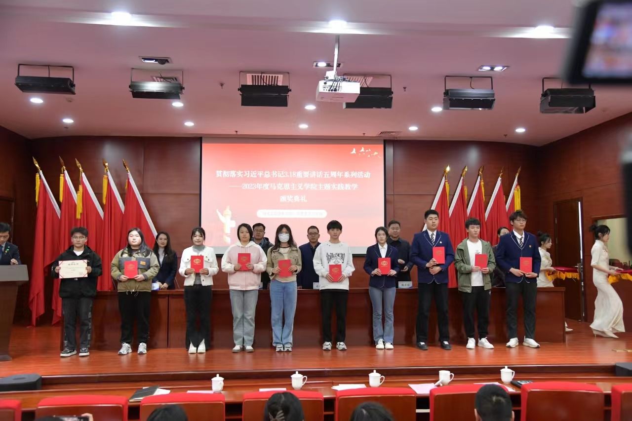 3月18日下午,马克思主义学院在图书馆报告厅举行学习贯彻习近平总书记“3·18”重要讲话五周年系列活动之2023年度马克思主义学院主题实践教学颁奖典礼。