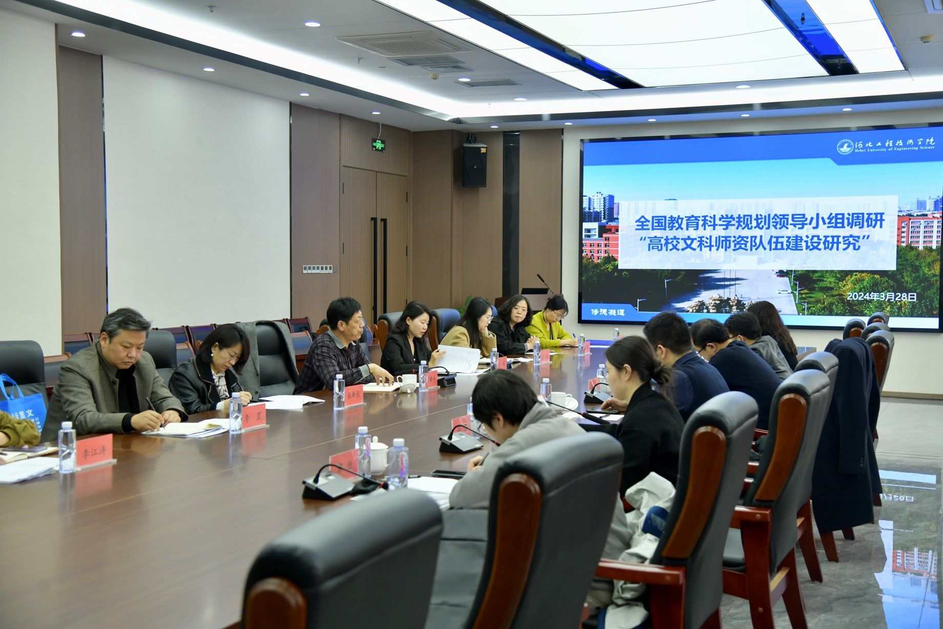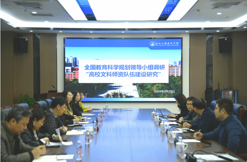 3月28日,中国教育科学研究院比较教育研究所副研究员康建朝、中国教育科学研究院教师发展研究所副研究员刘妍一行在河北省教育科学研究院副书记江德震、河北省教育厅发展规划处主任王博阳陪同下,到我校调研高校文科师资队伍建设情况,学校党委书记常新平,人事处、教务处、商学院、艺术与传媒学院负责人及教师代表等参加座谈。