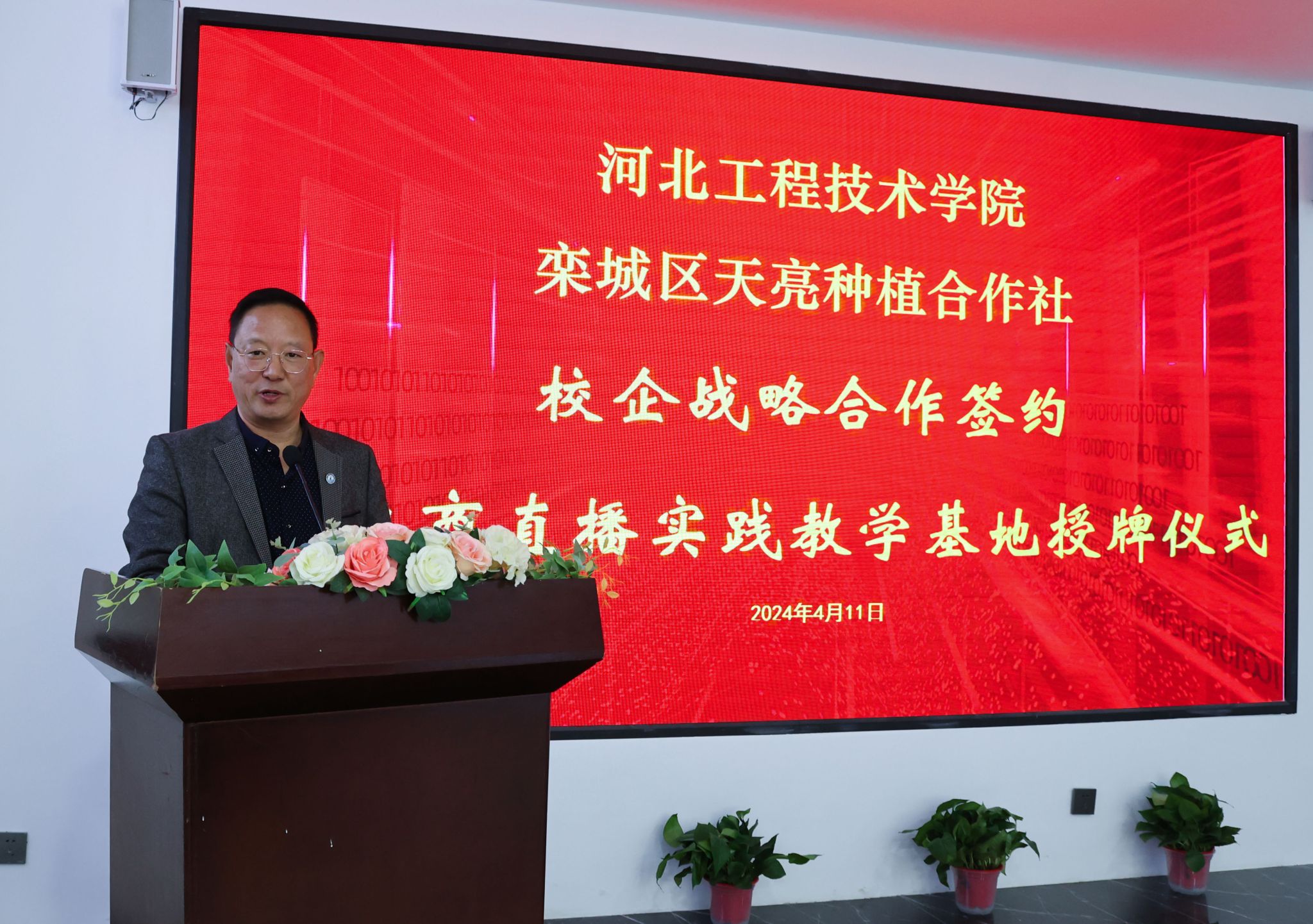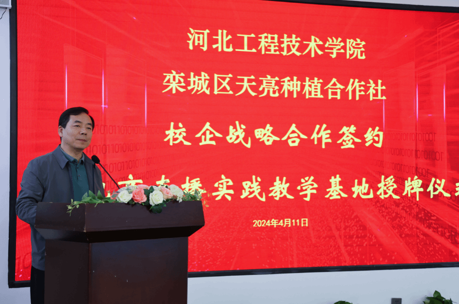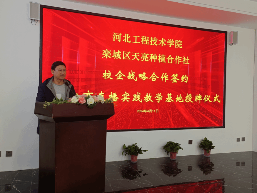 随后,校长助理武勇代表学校致辞。他指出,学校一直秉承“产教融合、协同育人”的教育理念,致力于培养应用型本科人才。此次与天亮种植合作社的合作,正是学校深化产教融合、服务地方经济发展的重要举措。武助理谈到,合作的形式和内容可以多样化,旨在通过双方的优势互补,共同推动栾城区乡村振兴的进程。