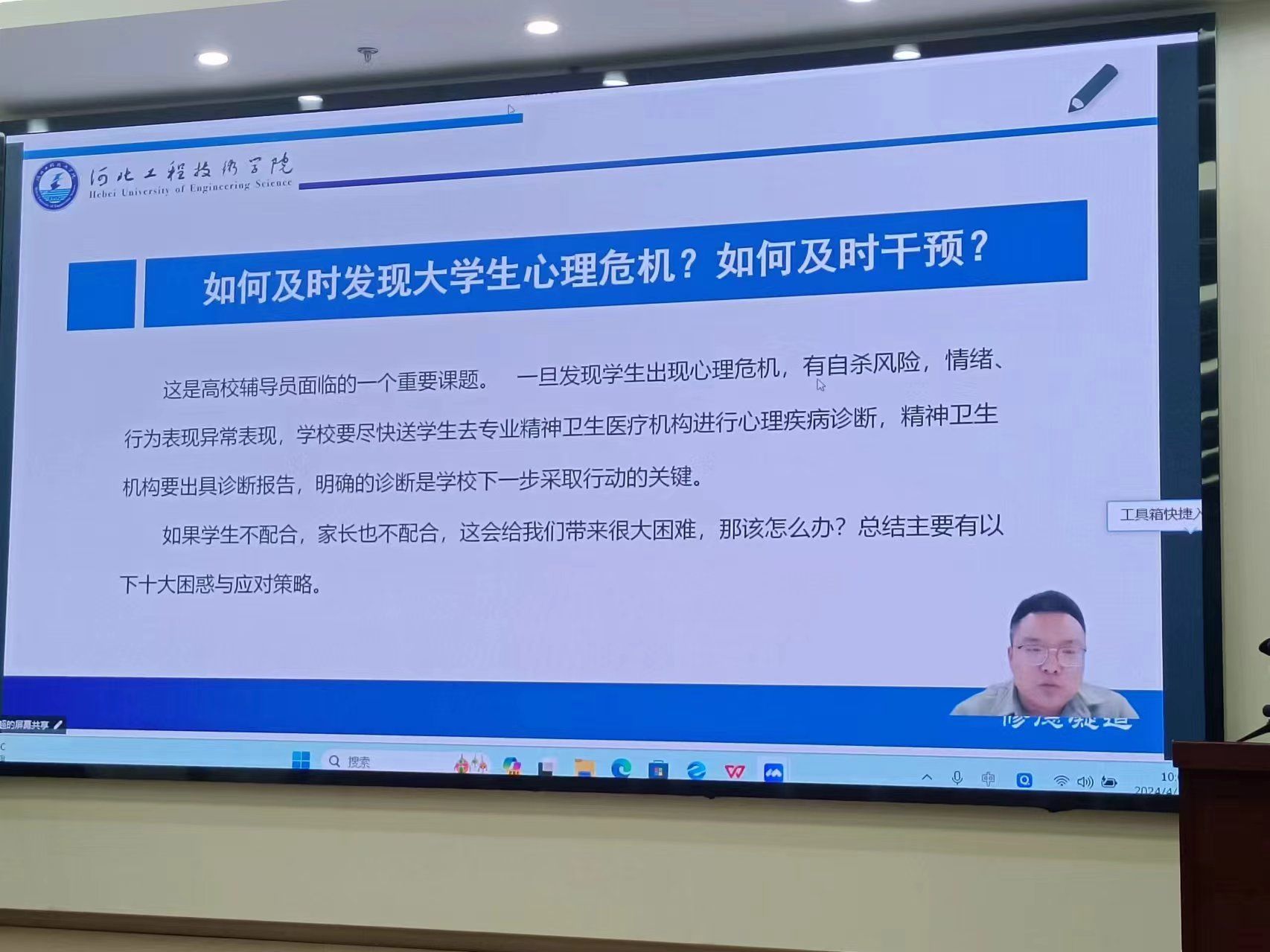 齐锦超老师就中南大学唐海波教授《大学生心理危机干预中面临的十大困惑与应对策略》专题做了学习分享,通过法律条文解读及案例讲解,不仅解决了大家的困惑,更教会了大家如何用行知有效的方法解决问题,提高了辅导员工作中的危机识别与危机干预能力。