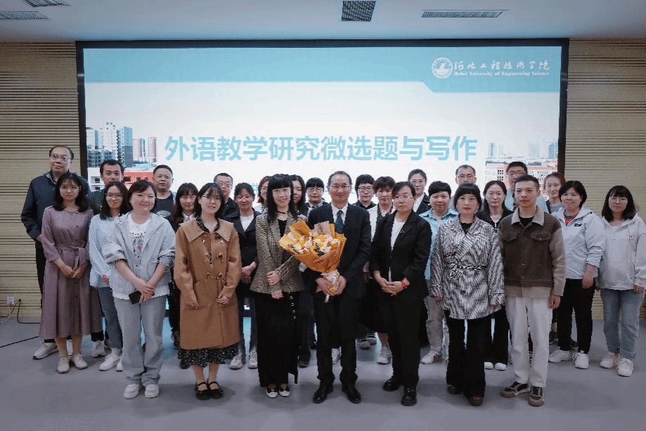为深入贯彻落实河北省教育厅《“周末专家河北行”活动工作推进方案》,着力打造高素质教科研人才队伍,实现外语教学科研提质增效。4月19日下午,外语教学部在图书馆五楼放映厅举行了第一期“周末专家河北行”专题讲座,特邀南开大学张文忠教授作题为“外语教学研究微选题与写作”报告。部门全体教师以及学生代表参加。讲座由副部长赵媛媛主持。