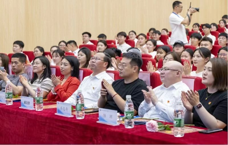 在五四青年节即将到来之际,为深入学习习近平总书记在纪念“五四运动”100周年大会上的重要讲话精神,学习弘扬五四先驱崇高的爱国理想和革命精神,集中展现数智产业学院青年师生的时代风貌,4月27日,数智产业学院2024年五四表彰大会暨第一期青马学生骨干培训班结业仪式在灵寿校区报告厅举行。校党委宣传部副部长成文清、美育教学部副部长包丽媛、学院党总支书记杨文飞,副院长乔志奇、副院长胡丽莎,团总支书记陆玥和受表彰的先进集体、个人和师生代表共计200余人参加了大会。