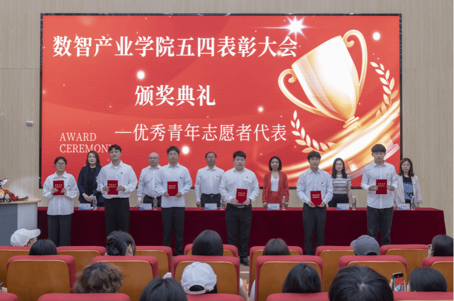 大会分两部分进行。第一部分表彰了2024年度学院五四红旗团支部、优秀共青团员、优秀共青团干部、优秀青年志愿者、优秀社团干部、优秀社团成员、学生之星和第一期青马学生骨干培训班优秀学员,展现了新时代数智产业学院青年自信自强、勇担使命的精神风貌。第二部分“心存热爱·永远向前”五四文艺晚会,旨在大力弘扬“五四”精神,以丰富多样的艺术形式,生动展现党团结带领全国各族人民战胜各种艰难险阻、推进中国革命、建设和改革的光辉历程,激励数智产业学院青年师生在新的历史起点上,坚定不移跟党走,为党和人民奋斗,以实际行动书写无愧于时代的青春华章。
