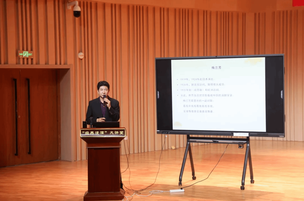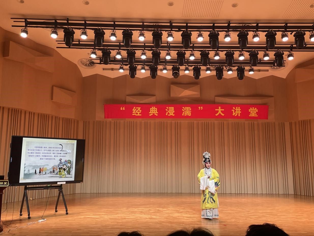 5月9日晚,“经典浸濡大讲堂”第三十五讲“京韵悠长,国粹华章”经典戏曲进校园活动在学校音乐厅拉开帷幕。戏曲戏剧专家陈平老师受邀担任主讲嘉宾,通过深入浅出的讲解和精彩的现场演绎,让师生们领略了京剧艺术的独特魅力和台前幕后的精彩,感受中华民族传统文化源远流长与博大精深。