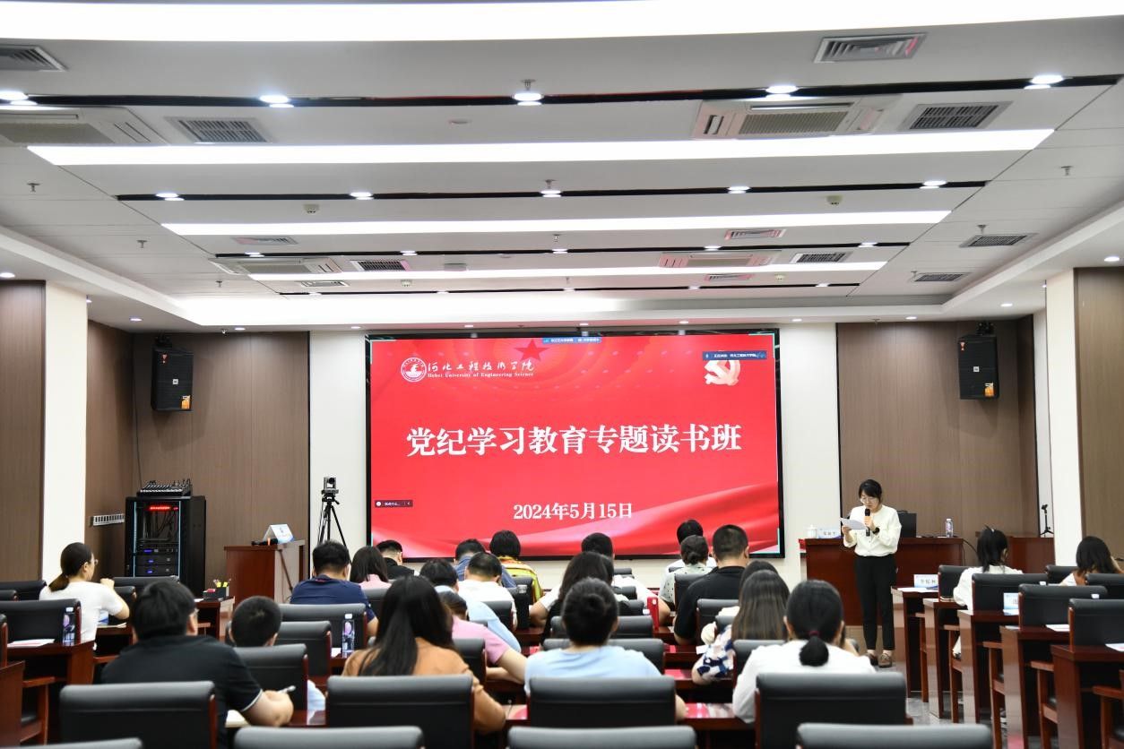 根据学校党纪学习教育总体安排,5月15日下午,我校在会议中心第一会议室举办党纪学习教育读书班。校党委书记常新平,党纪学习教育工作专班成员,党委组织部、党委宣传部等有关部门负责同志,各党总支书记、党支部书记出席参加。读书班由党委组织部部长李忆秋主持。读书班采取党委书记带头领学、党总支书记交流研学、观看党纪学习教育专题片等方式进行。
