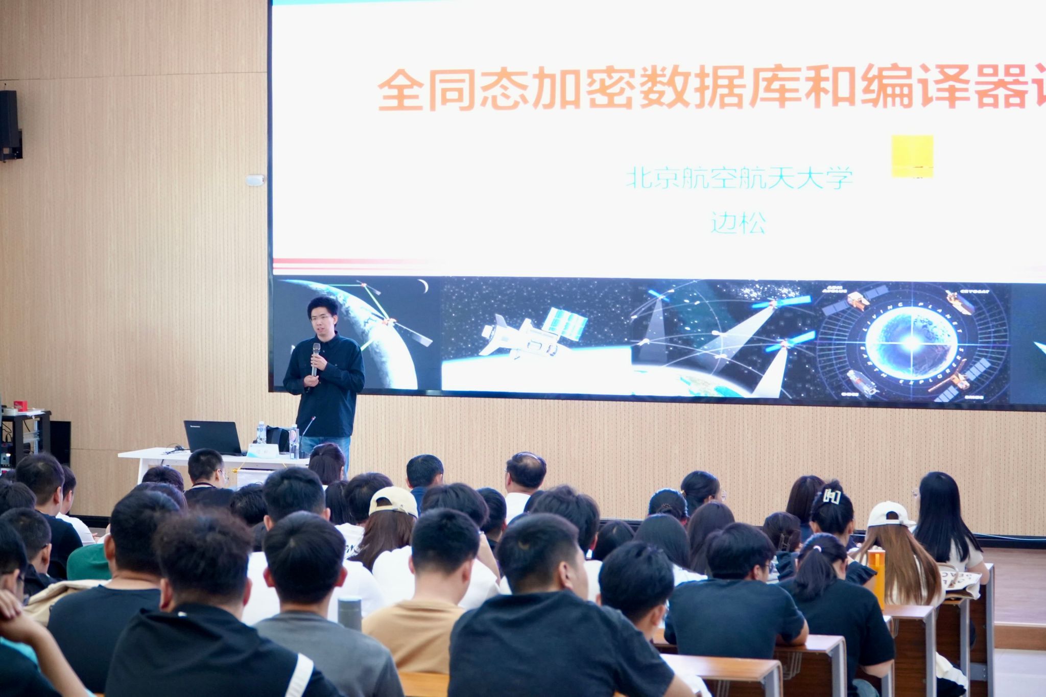 讲座中,边教授通过丰富的案例和生动的演示,以深入浅出的方式,从基本概念到实际应用,从技术原理到未来发展趋势,详细阐述了全同态加密数据库及编译器设计的相关知识,让原本抽象的技术知识变得通俗易懂,便于师生理解和掌握。师生们针对讲座内容,积极踊跃地举手发言,边教授以专业的知识和丰富的经验,一一为师生们答疑解惑,赢得了阵阵掌声。