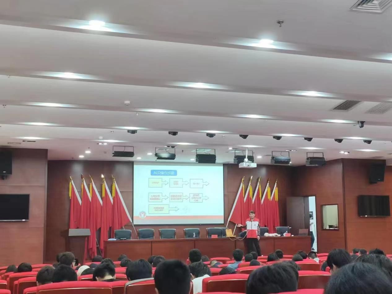 韩春华教授从心肺复苏、AED体外电除颤、气道异物梗阻等方面细致、生动的讲解了急救知识。她根据不同年龄阶段患者特点,分别介绍了心肺复苏操作流程、动作要领、施救注意事项及AED机的操作使用方法及气道梗阻的分类与施救方法。为了让师生真正掌握正确急救方法,韩教授在讲解的同时进行了现场操作,加深了广大师生对知识的理解和记忆,加强了对急救技能要领和注意事项的掌握。