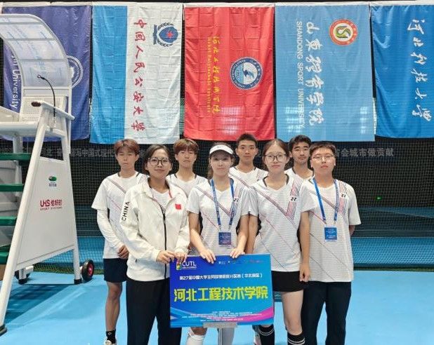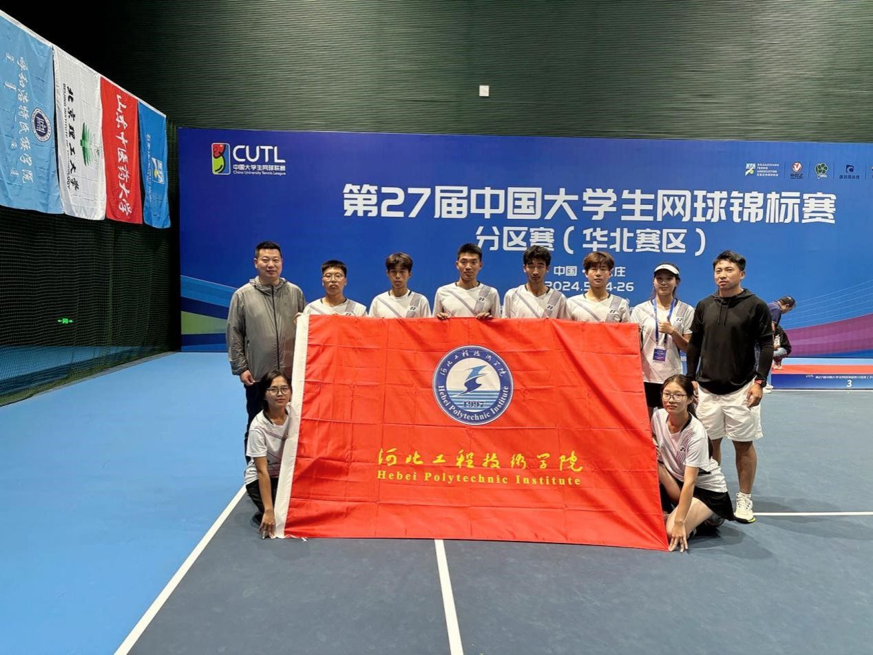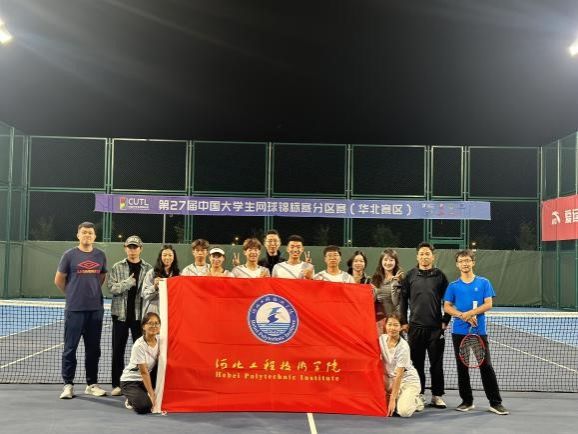 5月24日至26日,第27届大学生网球锦标赛在石家庄举办。本次比赛由中国大学生体育协会主办,中国大学生体育协会网球分会执行,石家庄市网球协会承办,共有来自河北、北京、天津、山东、内蒙古等地的39所高校代表队参赛。我校网球队在领队黄凯轩老师 、教练员张永胜老师、体育教学部高寒老师现场指导下参加了男子团体甲组、女子团体甲组的比赛,运动员们努力拼搏,积极进取,突破了自我。