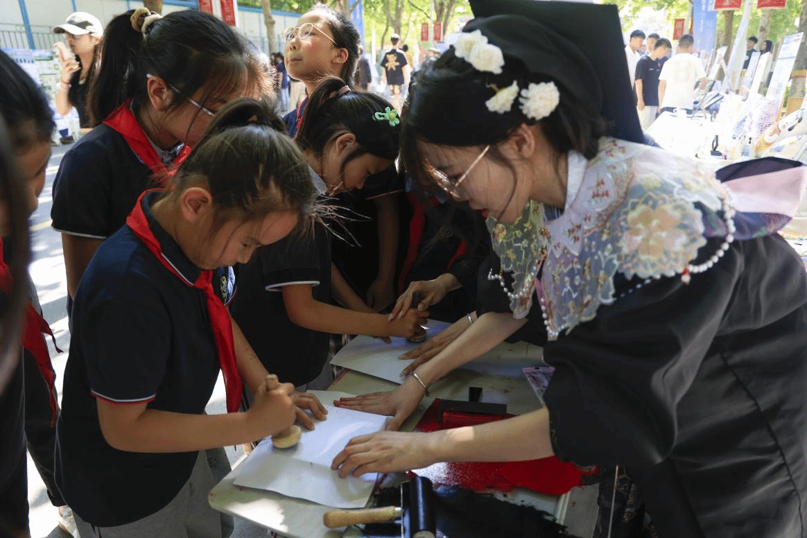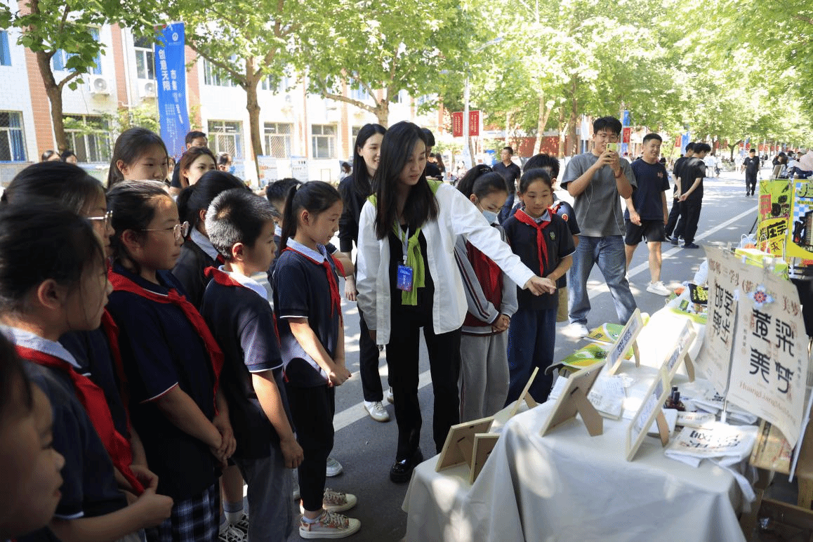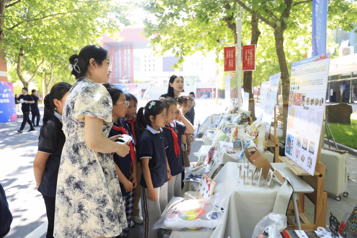 在校园,宫尹小学的师生们目睹了2024届视觉传达系、环境设计系、艺术设计学系毕业生们精心创作的各类文创作品以及学校美育成果展。这些作品以传统文化、历史人文、地方特色为主题,通过独特的创意和精湛的工艺,展现了我校学生对艺术的热爱与追求。