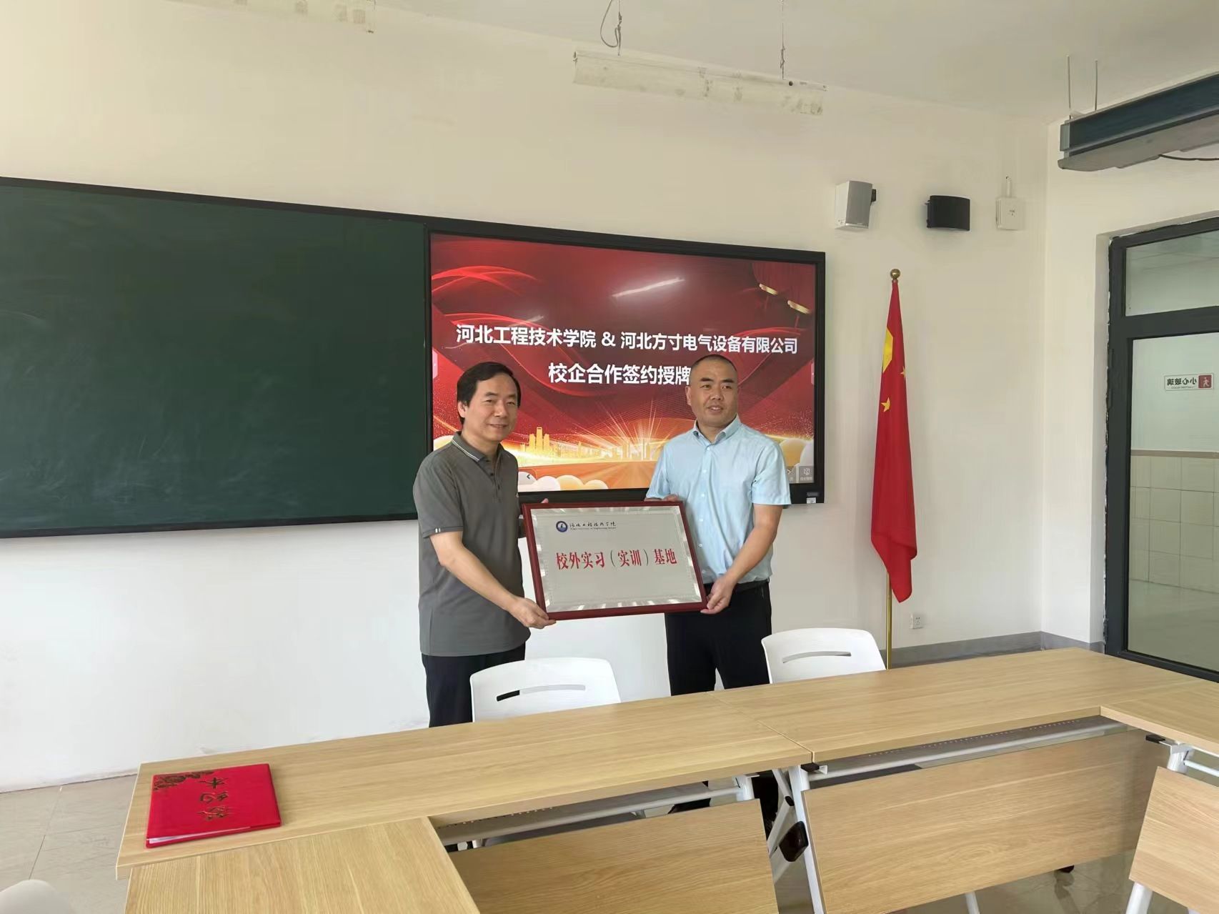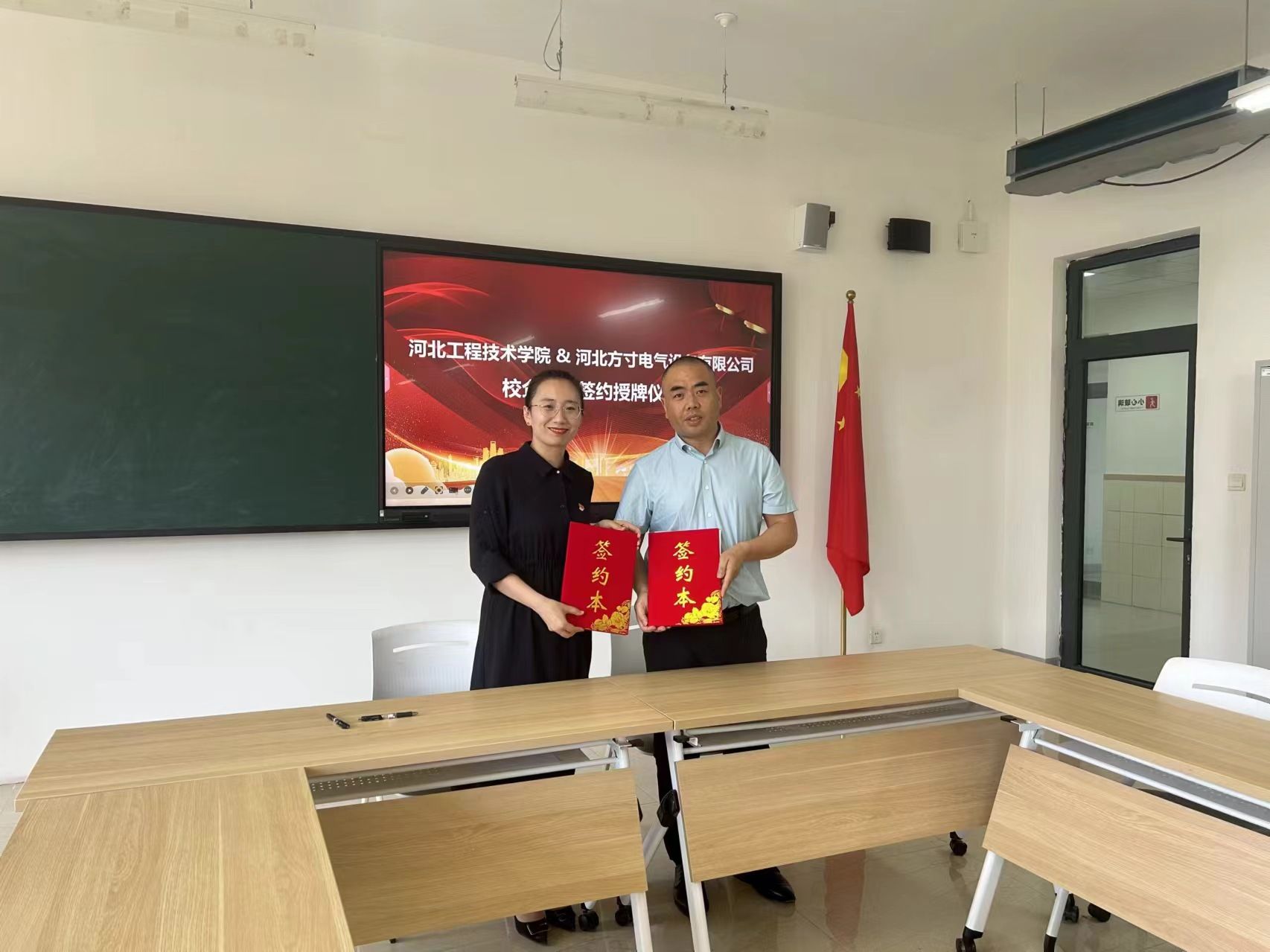 5月30日上午,我校与河北方寸电气设备有限公司举行校企合作签约授牌仪式。校长助理武勇,科研与产教融合处副处长王俊昆,网络与通信学院党总支书记兼学管副院长连婷、副院长彭丽叶,河北方寸电气设备有限公司总经理杨明、技术部经理李思斌出席了本次签约授牌仪式。