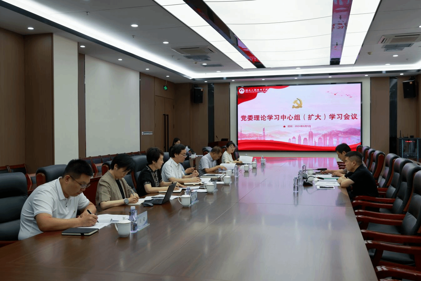6月5日,我校党委理论学习中心组(扩大)学习会议在会议中心第三会议室召开。校党委理论学习中心组成员、全体校领导、党委职能部门主要负责人参加。校党委书记常新平主持会议。