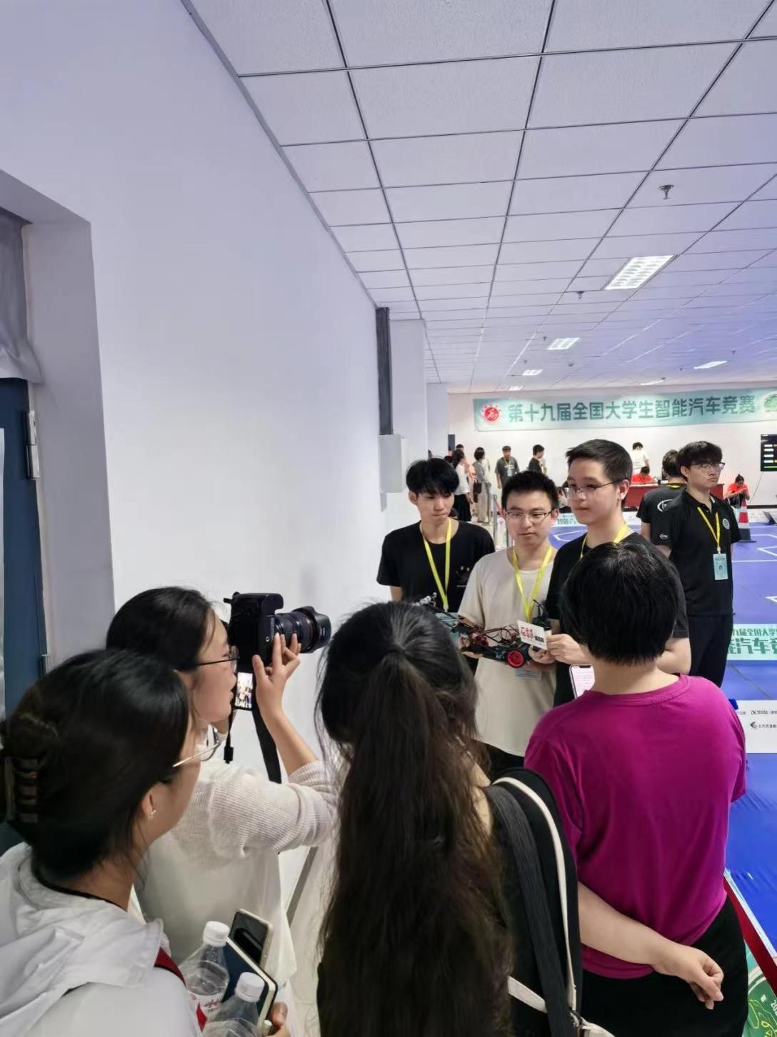 学院高度重视大学生学科和技能竞赛工作,坚持以赛促教、以赛促学,全面提升应用型人才培养质量。学院李震老师作为指导老师,郭耀坤、余泽浩、田新宇作为队员参加了电磁组项目,这是学院首次选派参赛队伍参加此次赛事。在强队如林的赛事里,学生沉着冷静稳定地在赛场上对自己的智能车进行调试,积极应赛,每个环节都充分展现出了选手的创新思维、动手实践能力和应对挫折的能力。石家庄新闻网对学院的参赛选手进行了深入而全面的专访,字里行间洋溢着对网络与通信学院队伍技术实力与团队合作精神的由衷赞美。