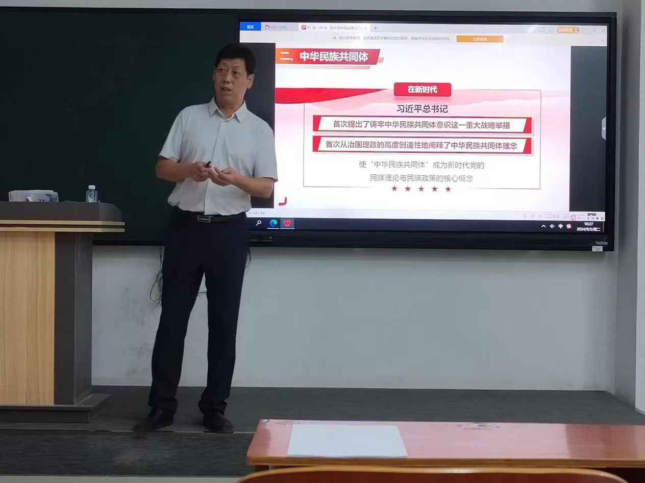 常书记深入浅出地讲授了《中华民族共同体概论》第一讲“中华民族共同体基础理论”,分别从中华民族共同体的基本概念、中华民族共同体的基本理念、中华民族共同体的理论渊源、中华民族现代文明与中华民族共同体等四个方面展开讲述。