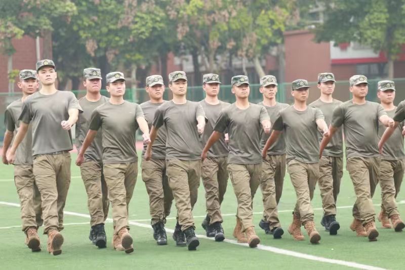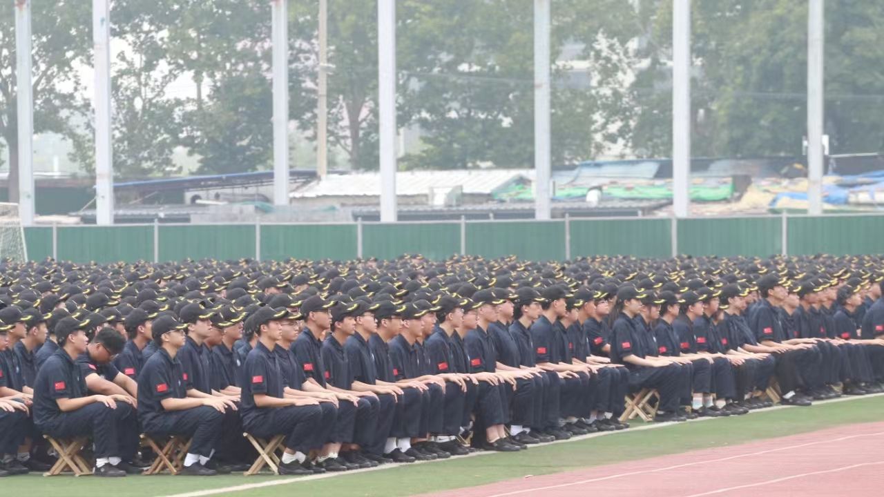 全体参训新生身着统一的军训服,英姿飒爽,队列井然。他们眼神坚毅,神采飞扬,洋溢着青春的朝气与不屈的斗志。军训教官团各分队踏着激昂的乐点步入会场,步伐一致,气势如虹,彰显了严格的纪律与较高的军事技能。