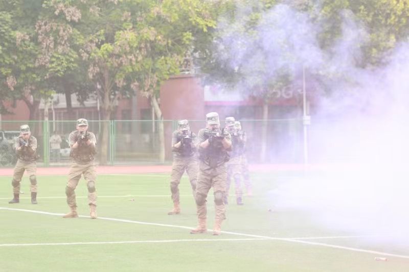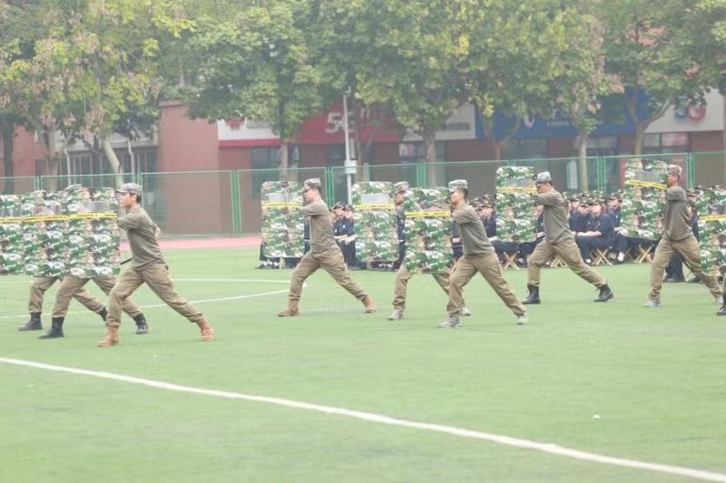 开训式现场,军训教官团展示了军事训练科目,行云流水的动作、刚劲有力的招式,展示了我校军训教官一往无前、敢打必胜的血性胆气,更是我校军事训练的一大特色。