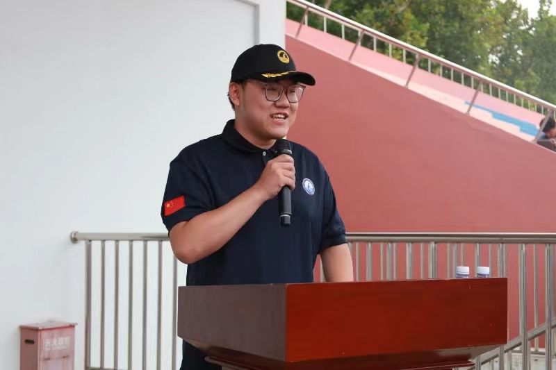 校长助理刘喜贵发表讲话,向承担本次军训任务的80名教官表示感谢,向近4000名新生表示欢迎,并提出三点期望:一是统一思想,深刻认识军训重要意义;二是严明纪律,听从指挥,牢固树立令行禁止的纪律意识;三是小我融入大我,牢固树立团队友好意识。期望新生珍惜军训时光,磨砺意志,锤炼品格,为成为全面发展的社会栋梁奠定坚实基础。