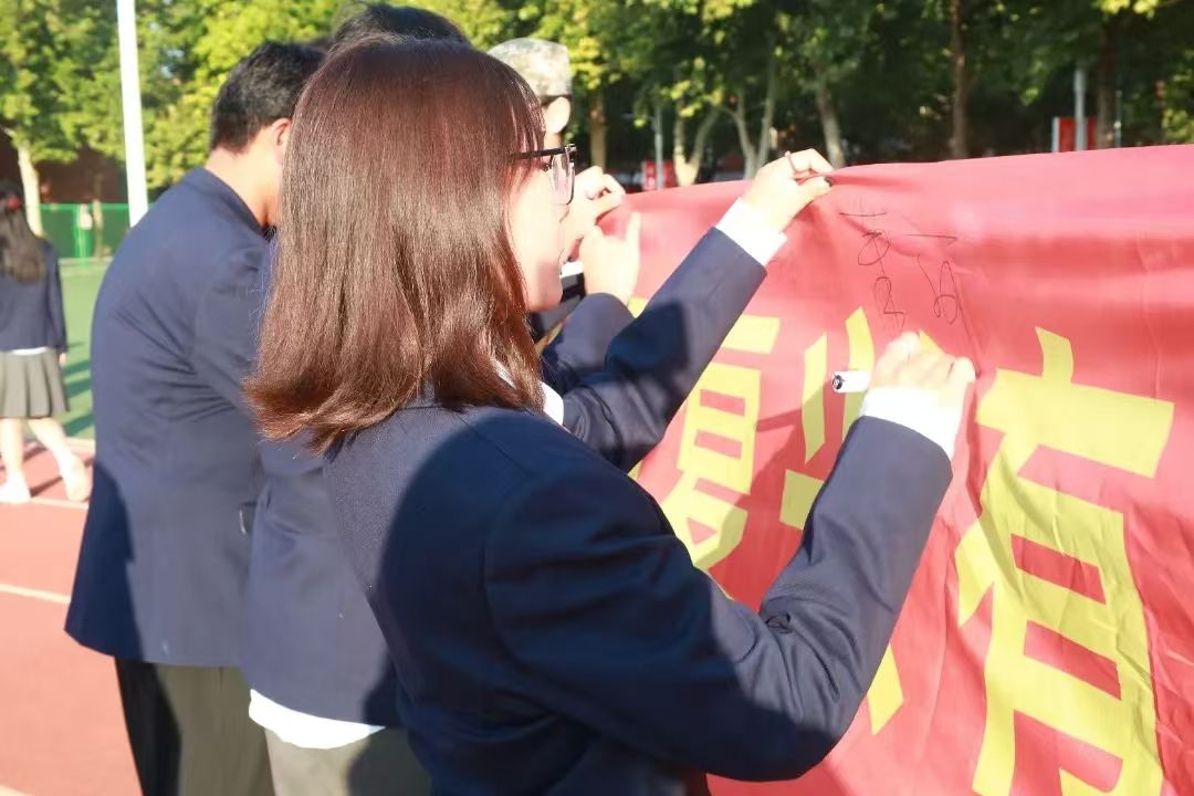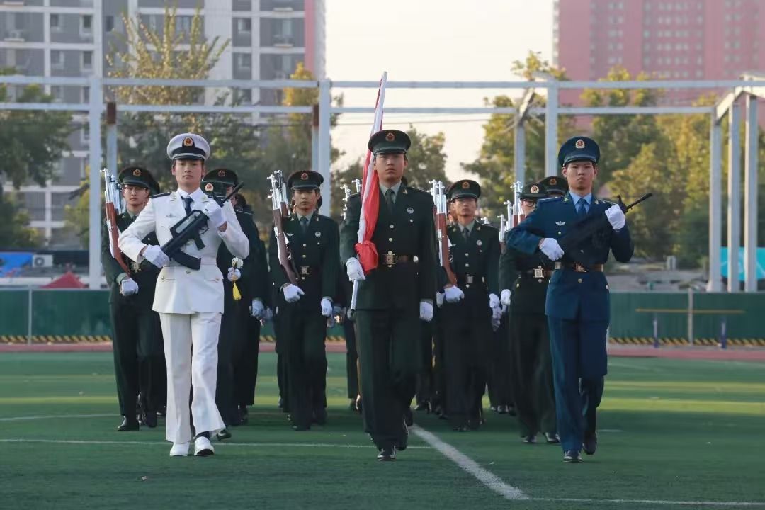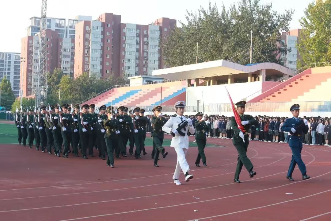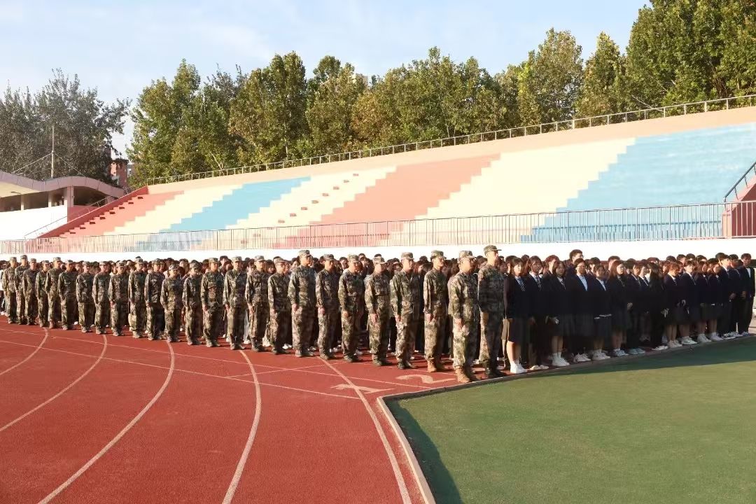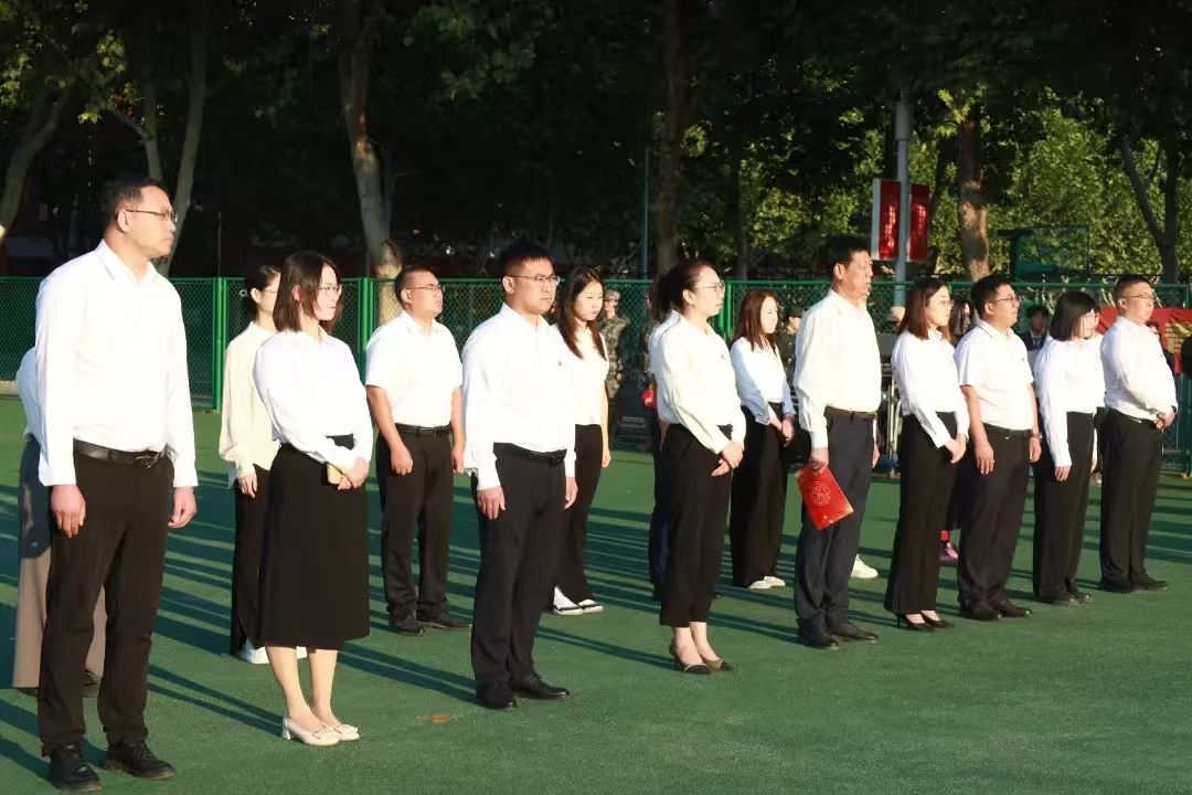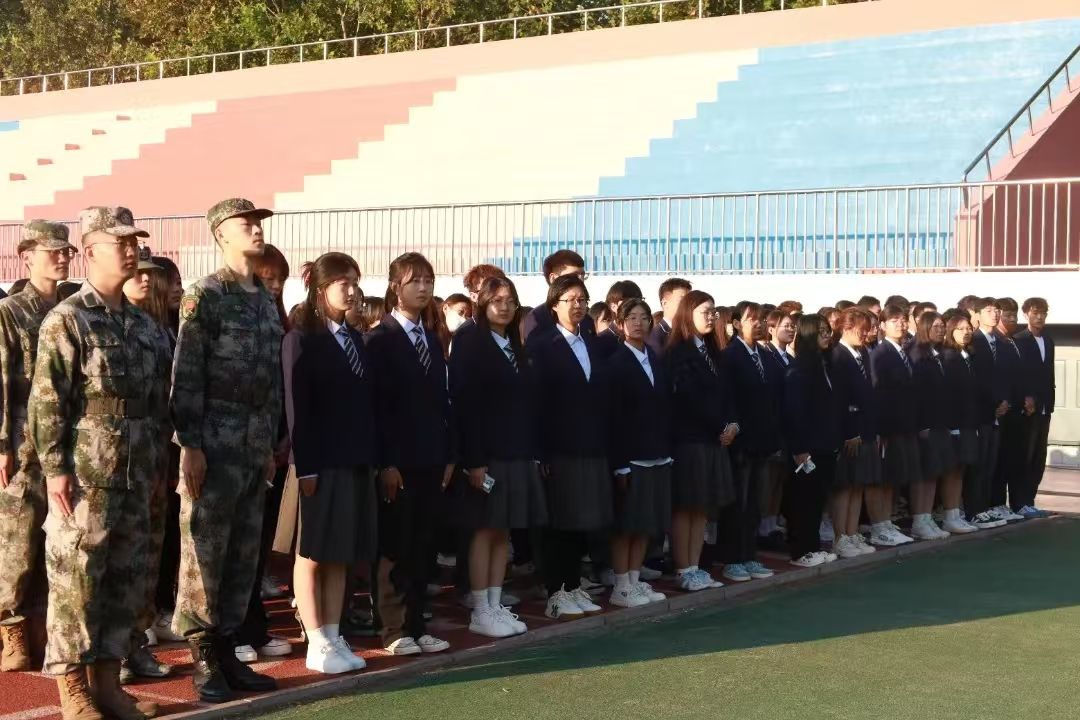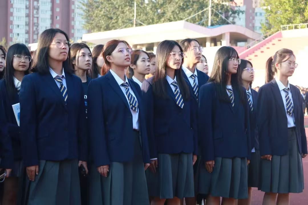 在雄壮的国歌声中,全体师生肃立,面向国旗行注目礼,展现出青春学子的昂扬斗志和深厚的爱国情怀。