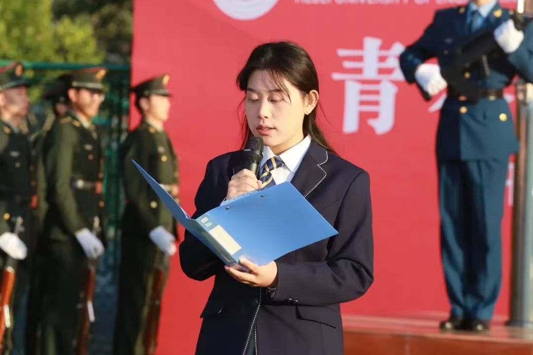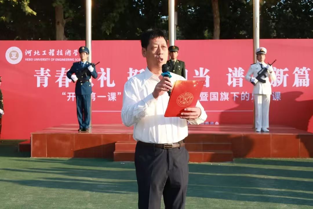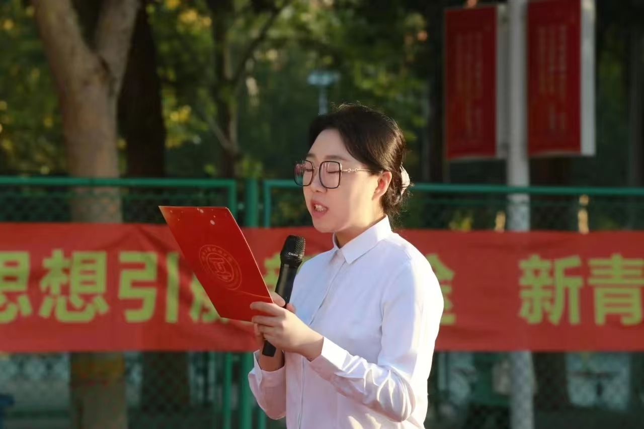 为深入学习贯彻习近平新时代中国特色社会主义思想,增强全校师生的爱党爱国爱校意识,培育和践行社会主义核心价值观,激励青年学生踔厉奋发,砥砺前行,以崭新的面貌全力以赴投入到新学期的学习和生活中,9月23日上午,我校在田径场隆重举行了以“青春献礼 挺膺担当 谱写新篇”为主题“开学第一课”主题升国旗仪式暨国旗下的思政课活动,此次升旗仪式由校团委副书记李雨濛主持。