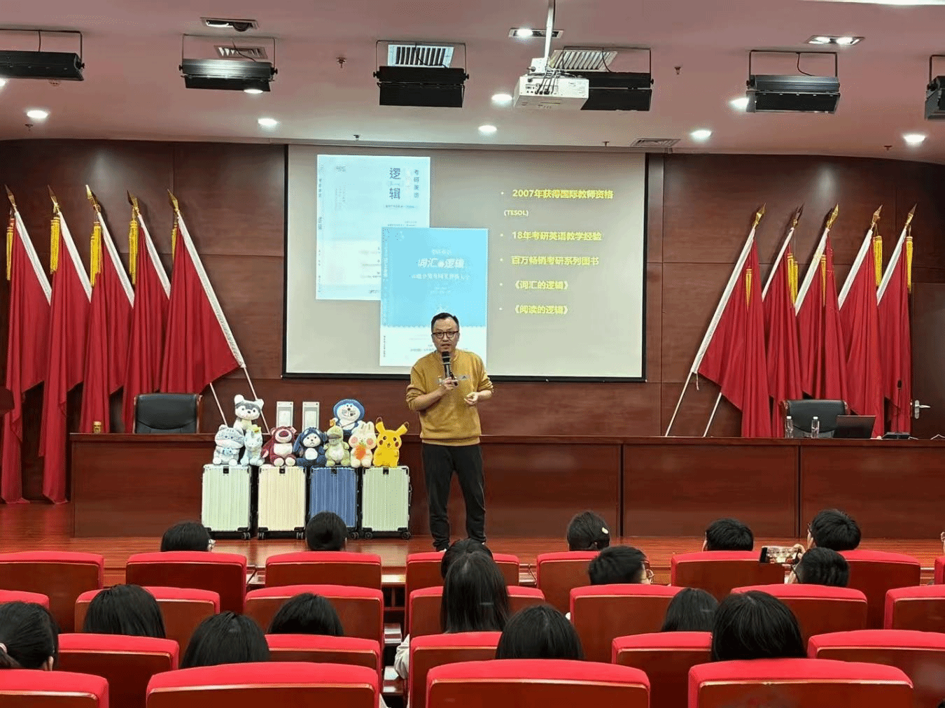 近日,外语教学部特邀资深考研英语辅导专家唐迟开展考研英语高分攻略讲座,他凭借深厚的学术功底和丰富的教学经验,为学子们呈现了一场条理清晰、内容丰富的知识盛宴。
