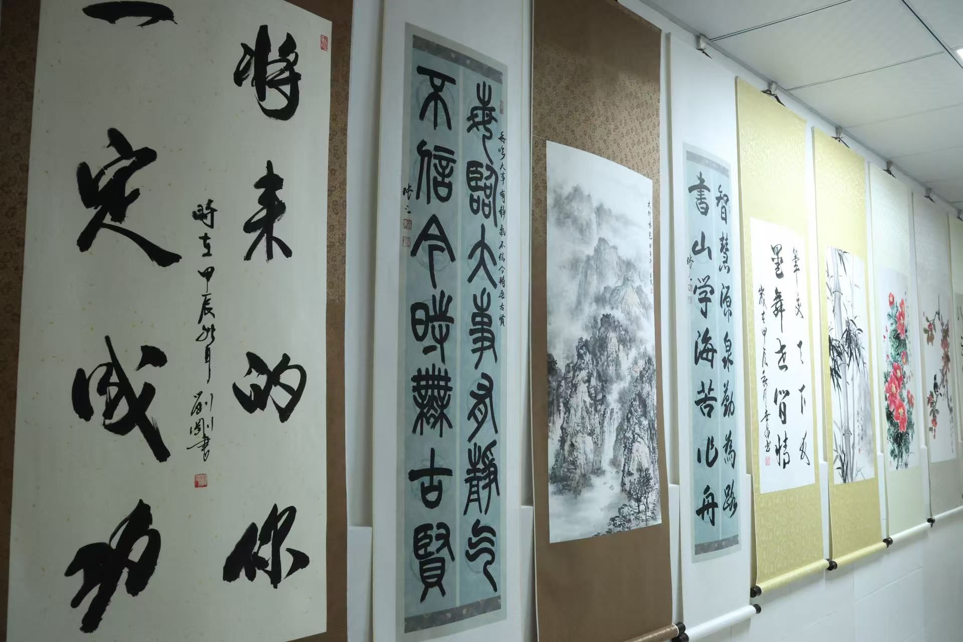 开幕式结束后,为期一周的校园文化书画作品展暨公益笔会正式拉开帷幕。展览现场,墨香四溢,丹青焕彩。书法作品或雄浑大气或婉约细腻,笔势遒劲有力,仿佛在诉说着古老的文化故事。绘画作品则题材广泛,山水画卷气势磅礴,花鸟作品栩栩如生,人物画像神韵十足。每一幅作品都凝聚着艺术家们的深厚造诣和独特匠心。公益笔会现场,文化艺术名家们挥毫泼墨,即兴创作了大量精美的书画作品,赠送给师生。师生们在欣赏书画作品的同时,纷纷感受到艺术的无穷魅力。同学们表示,通过这次展览,对书画艺术有了更深刻的认识和理解,也对美育教育有了更直观的感受。