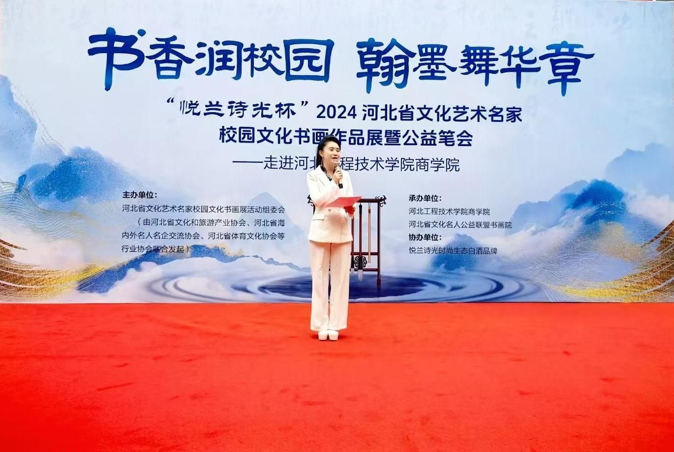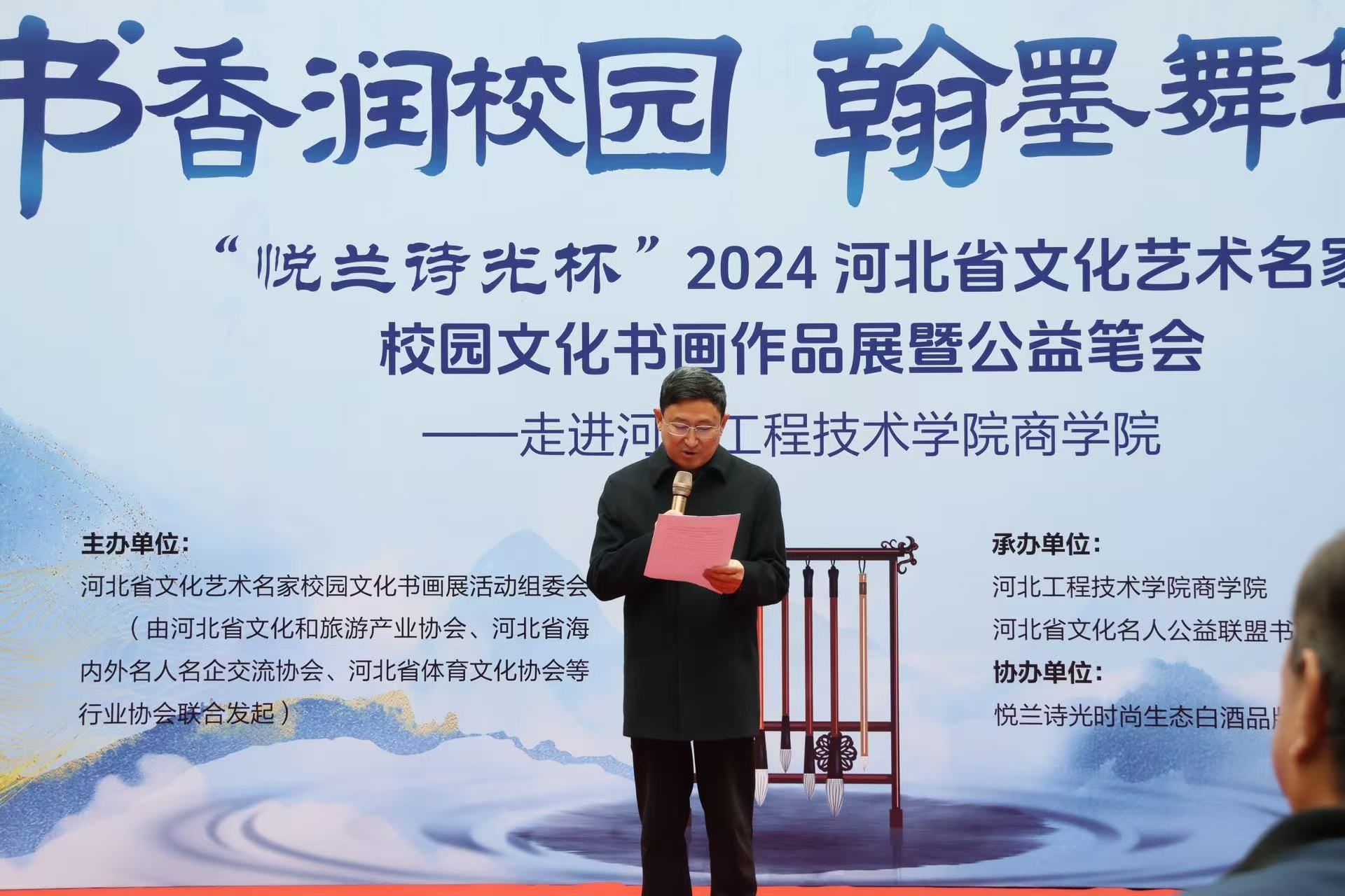 书香润校园,翰墨舞华章。为弘扬传统文化艺术,促进校园文化建设,提升美育教育水平,10月19日上午,“悦兰诗光杯”2024河北省文化艺术名家校园文化书画作品展暨公益笔会在我校商学院成功举办。本次活动由河北省文化艺术名家校园文化书画展活动组委会(由河北省文化和旅游产业协会品牌推进专业委员会、河北省海内外名人名企交流协会、河北省体育文化协会等单位联合发起)主办,由河北《少妇白洁》色情小说商学院、河北省文化名人公益联盟书画院承办,由悦兰诗光时尚生态白酒品牌协办。参加此次活动的领导有河北省文化艺术名家校园文化书画展活动组委会主任王俊昆、商学院院长王明吉、活动组委会成员、书画家代表及商学院师生代表。本次活动由石家庄广播电视台财经融媒节目主持人、商学院2019届优秀校友杨静担任主持人。