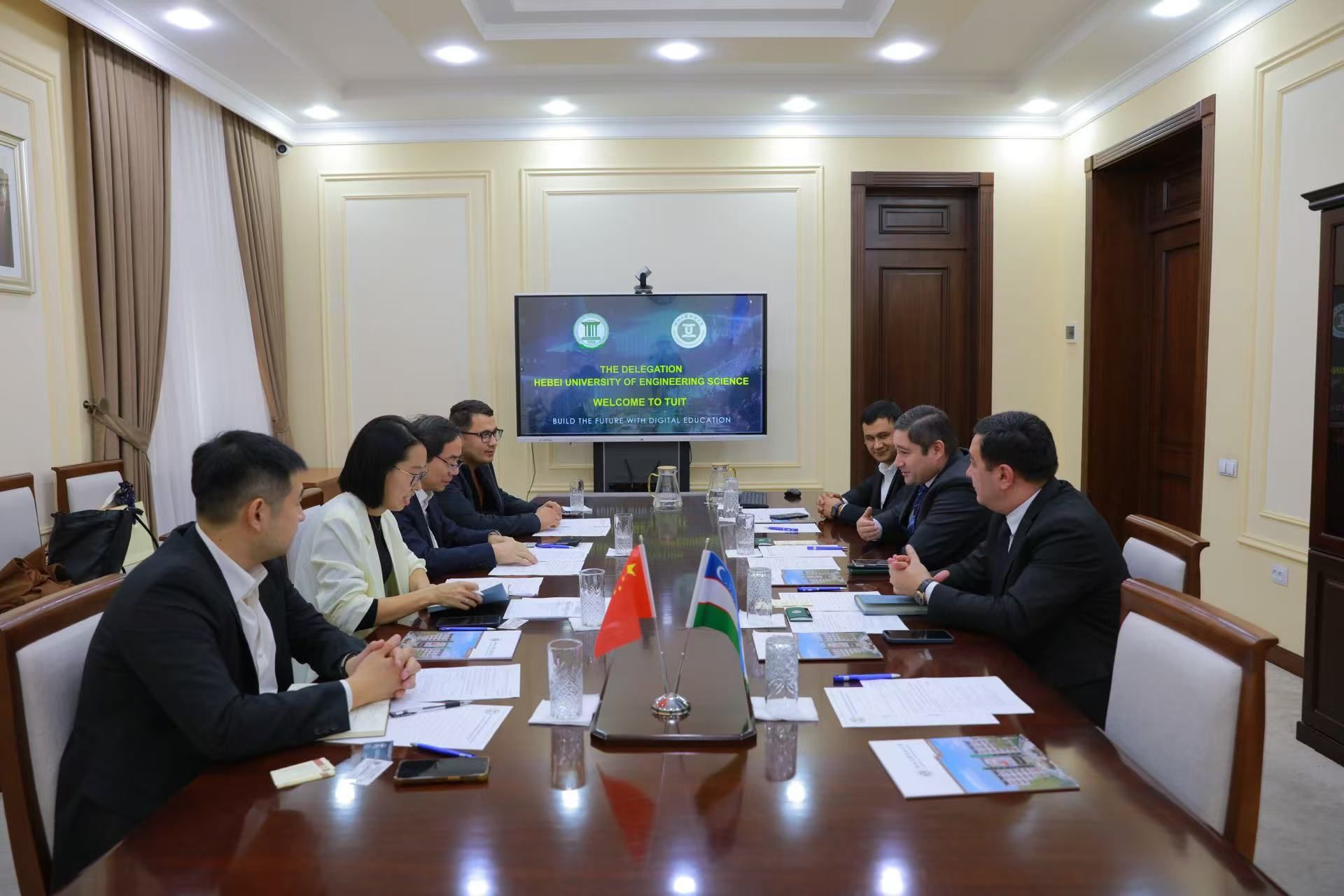 10月23日上午,代表团到访塔什干信息技术大学(TUIT),受到了该校副校长Djamshid Sultanov、Komil A.Tashev 等一行人的热烈欢迎。武校长向该校介绍了我校的办学历史、学院设置等情况,并对该校的热情接待和精心安排表示感谢。双方围绕学生短期交流(交换)、本升硕、7-10天来华研学、教师联合科研、双学位(2+2)等内容展开了深入探讨并签署合作备忘录。会后,代表团参观塔什干信息技术大学校园。