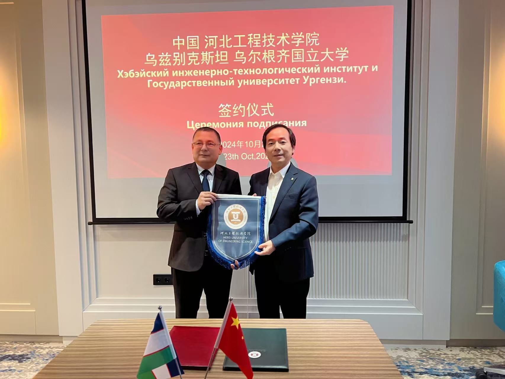 10月23日下午,代表团受到了乌尔根齐国立大学(UrSU)副校长Abdullayev Bakhrom Ismoilovich等人的热情接待,代表团与该校副校长等一行人举行会谈,会上,双方分别介绍了学校的基本情况及优势学科等,并针对教师联合科研、申请“一带一路”研究经费、交换生、学术交流、互邀教授授课等内容进行了座谈交流。会后,两校签署合作备忘录并互赠礼品。