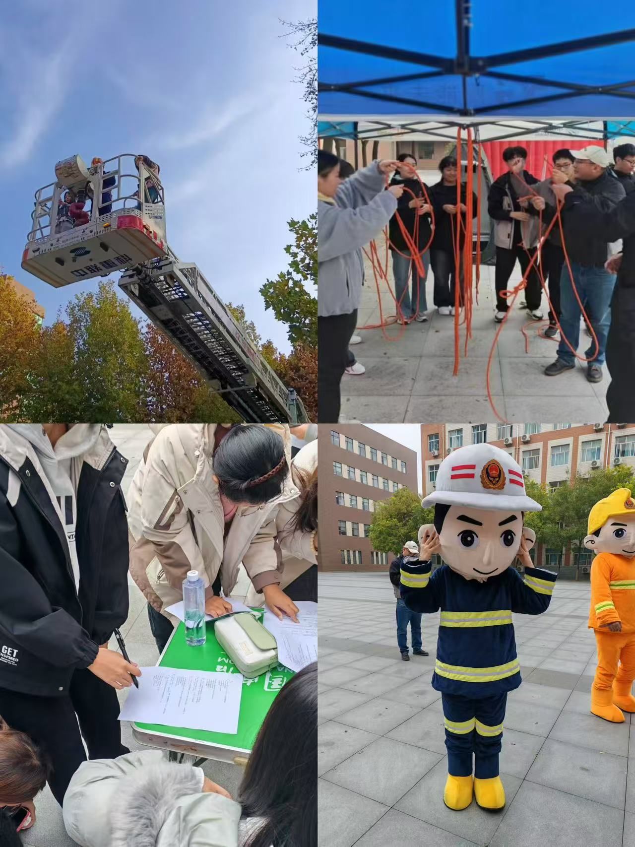 活动中,消防指战员邀请同学们体验防火救援服、水带使用、消防云梯、逃生帐篷等,在场的师生们还参加了消防安全知识竞答、模拟灭火器实操、消防逃生绳结教学等一系列互动游戏。另外,消防指战员也向师生提供了与学习、生活密切相关的消防安全知识咨询服务,进一步增强了师生的消防安全意识。