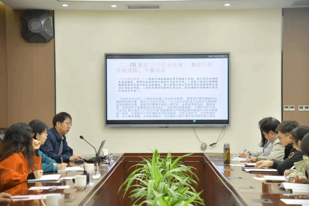 甄红军书记以《深化党的建设制度改革 推进新时代党的建设新的伟大工程向纵深发展》为题,结合二十届三中全会的热词和公报中关于党建方面的改革措施向我校马院教师宣讲党的二十届三中全会精神。