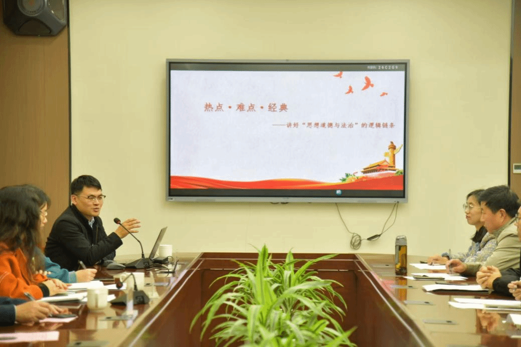 随后,杨新宾教授分享、交流了课程建设以及科研经验。杨教授以《思想道德与法治》课程为例,从课程特点、教学误区、教学设计、教学对策等多维度,分享了一线教师教学经验,同时杨教授还分享了国家社科基金申报书填写过程中需要注意的关键点和细节,给教师们带来了全面细致的指引。
