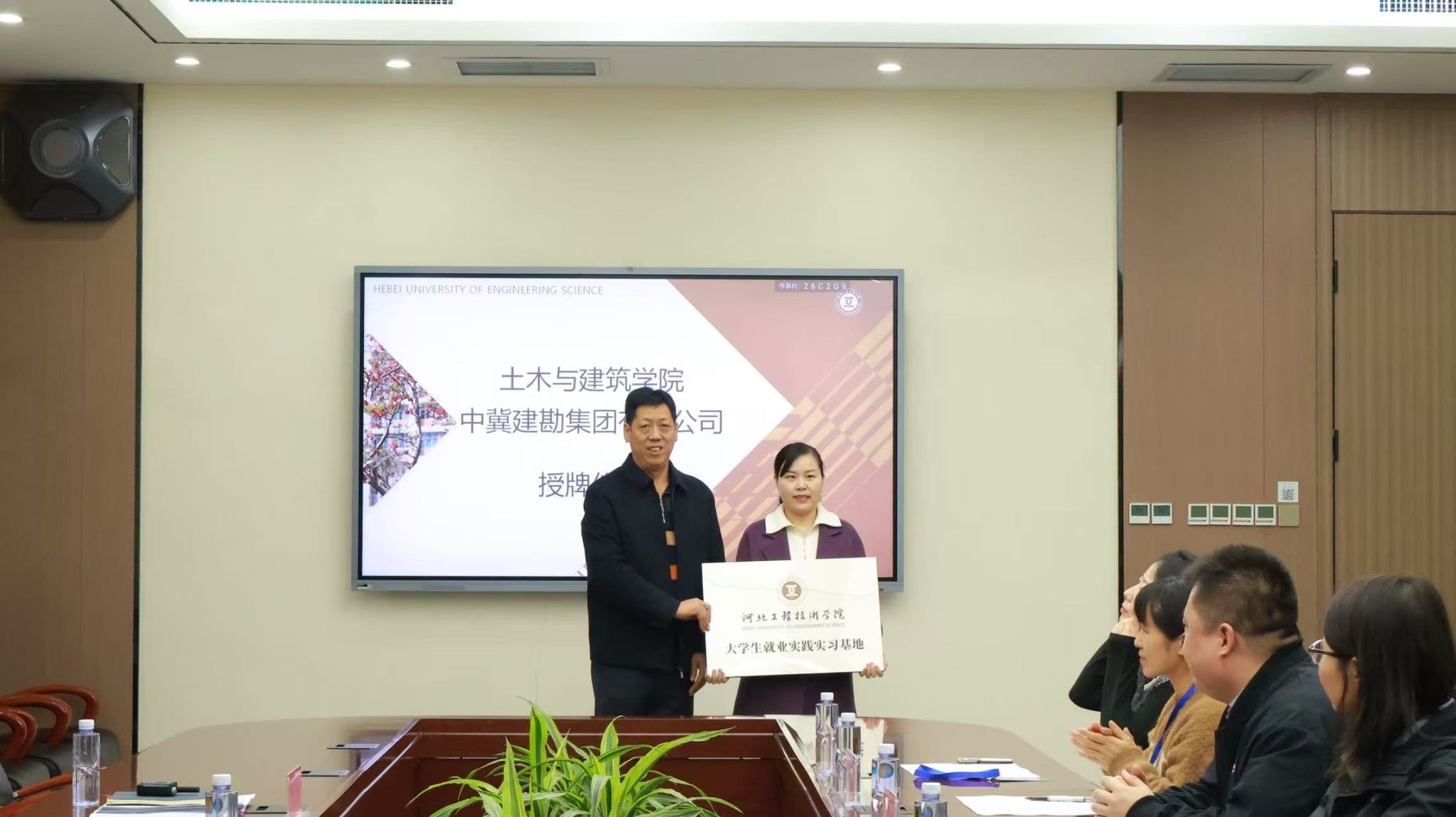 11月25日,土木与建筑学院就业实践实习基地授牌仪式在会议中心圆满举行。校党委书记常新平,土木与建筑学院院长张杰,土木与建筑学院党总支书记、学管副院长王亚杰,学生工作处副处长吕萌及9家企业代表参加授牌仪式。