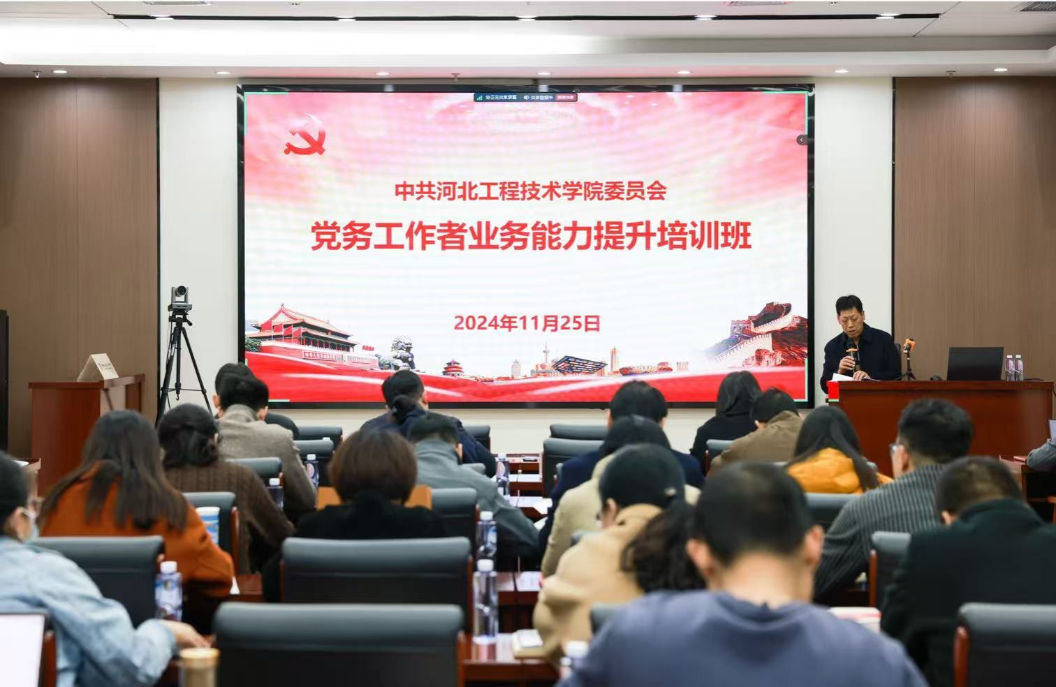 为深入学习贯彻习近平新时代中国特色社会主义思想和党的二十大及二十届三中全会精神,落实新时代党的建设总要求,全面提升各基层党组织党务工作者的政治素质、理论水平、业务能力和履职能力,切实增强基层党组织政治功能和组织功能,进一步推动学校党建工作与业务工作深度融合,11月25日,学校党委组织部、党校举办党务工作者业务能力提升培训班,学校党委书记常新平出席开班仪式并作开班讲话,党委组织部相关负责人、全校各基层党组织党务工作者参加此次培训。灵寿校区数智产业学院设置培训分会场,相关党务工作者线上参加。