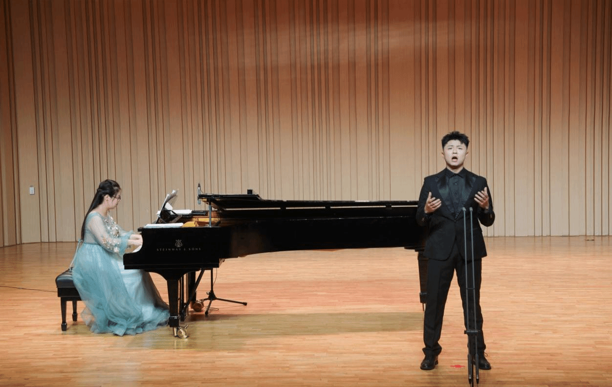 轩永福在歌剧选段《我的爱人你可听见》中展现了彭政委的坚强性格和坚定信念;王正阳则带来了古诗词艺术歌曲《春花秋月何时了》,他通过歌声哀叹与反思了李煜的一生;翟东旭、轩永福两位同学则携手演绎了《海恋》,他们通过描写大海抒发个人感情,进一步表达对祖国的爱戴和对恋人的思念之情。